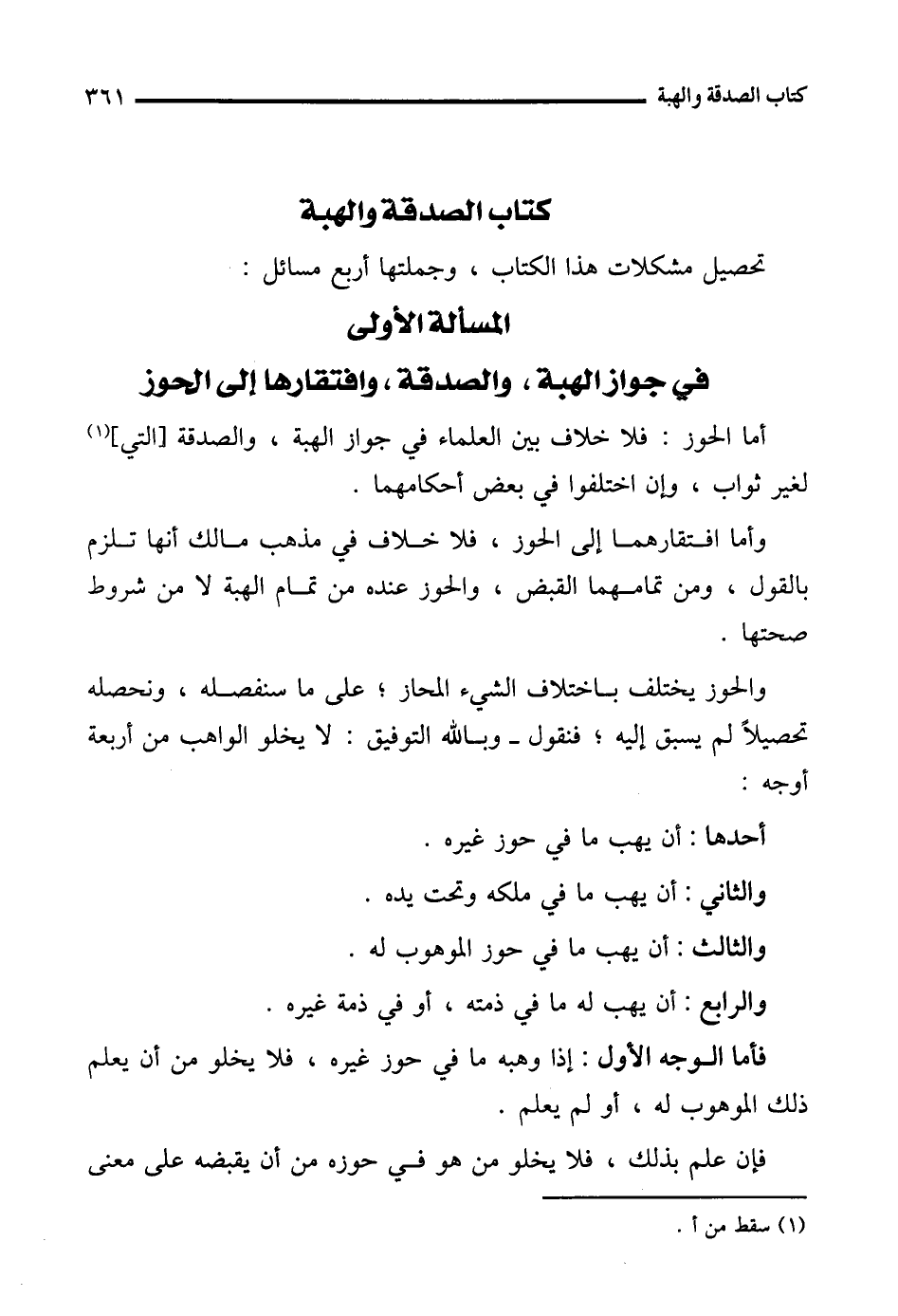 والحوز يختلف باختلاف الشيء المحاز؛ على ما سنفصله، ونحصله تحصيلًا لم يسبق إليه؛ فنقول -وبالله التوفيق: لا يخلو الواهب من أربعة أوجه: