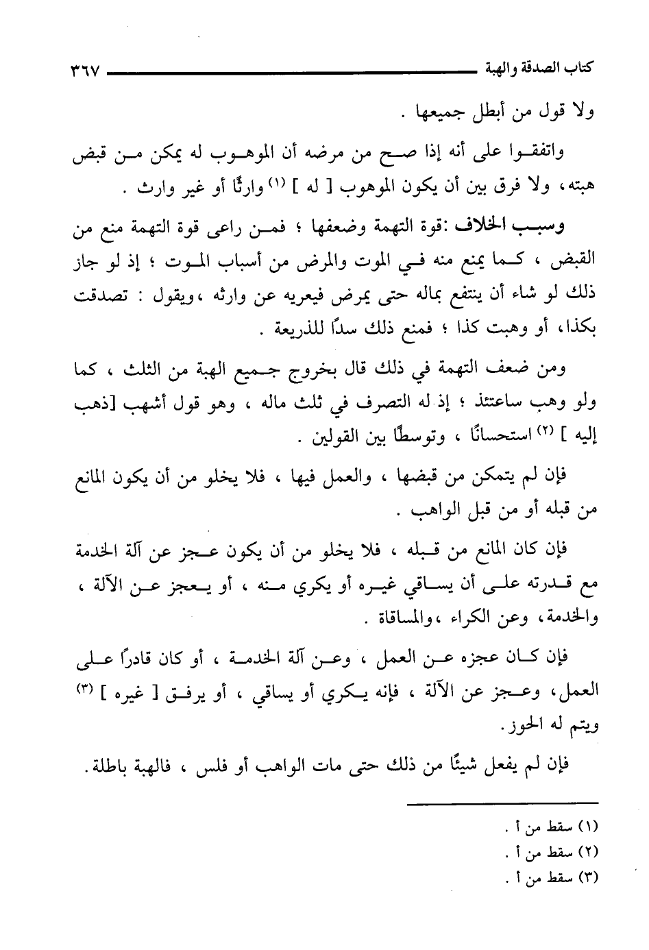 وسبب الخلاف: قوة التهمة وضعفها؛ فمن راعى قوة التهمة منع من القبض، كما يمنع منه في الموت والمرض من أسباب الموت؛ إذ لو جاز ذلك لو شاء أن ينتفع بماله حتى يمرض فيعريه عن وارثه، ويقول: تصدقت بكذا، أو وهبت كذا؛ فمنع ذلك سدًا للذريعة.