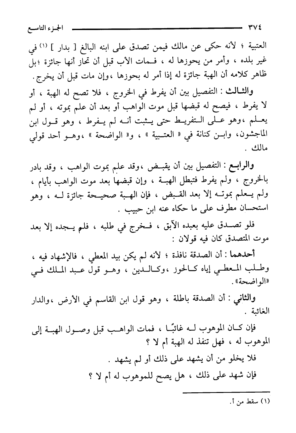 كتاب مناهج التحصيل ونتائج لطائف التأويل في شرح المدونة وحل مشكلاتها (اسم الجزء: 9)