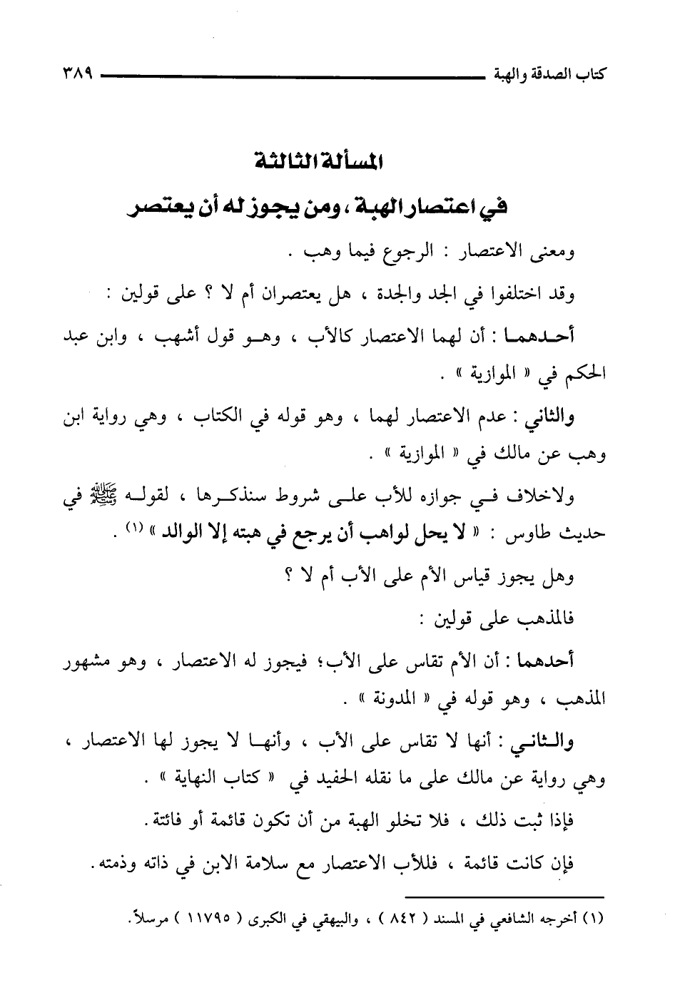 المسألة الثالثة في اعتصار الهبة، ومن يجوز له أن يعتصر