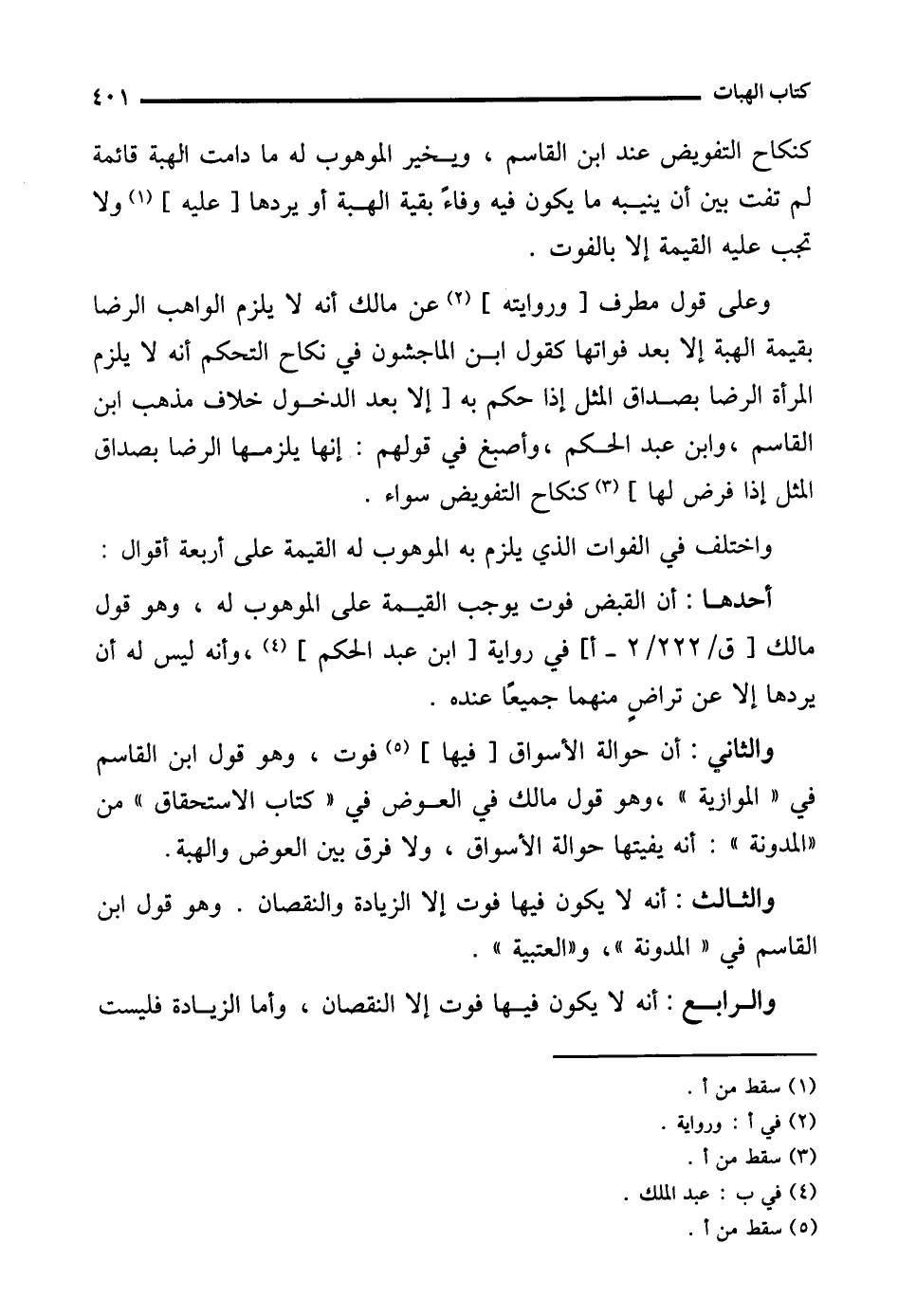 والرابع: أنه لا يكون فيها فوت إلا النقصان، وأما الزيادة فليست
