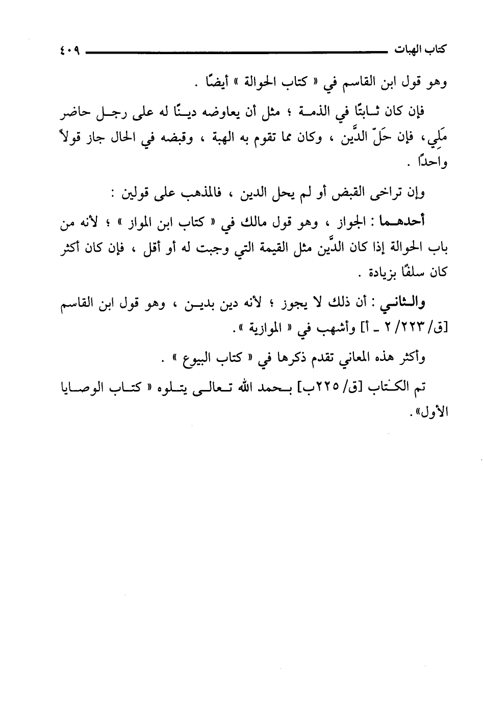 تم الكتاب بحمد الله تعالى يتلوه "كتاب الوصايا الأول".