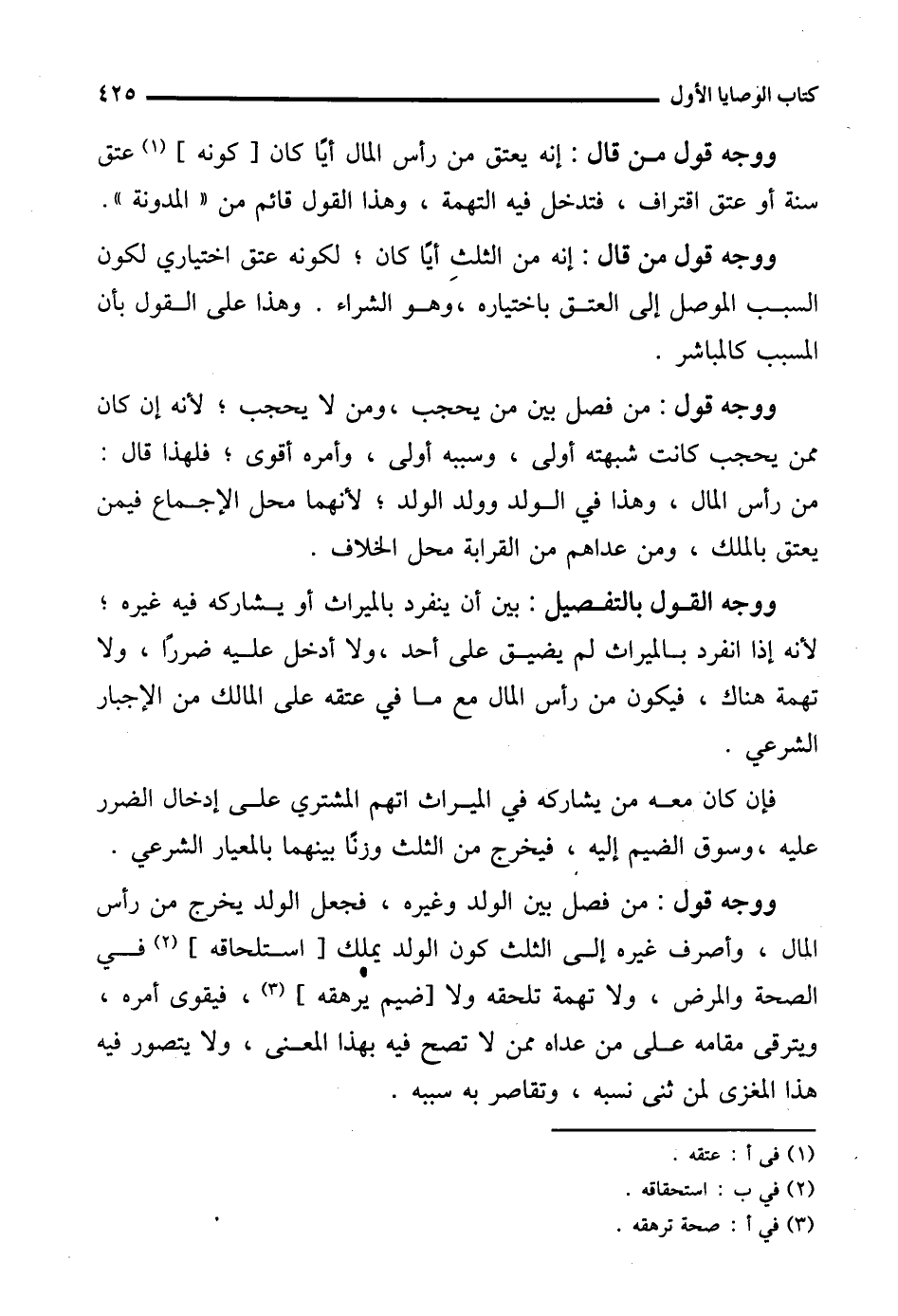 ووجه قول: من فصل بين الولد وغيره، فجعل الولد يخرج من رأس المال، وأصرف غيره إلى الثلث كون الولد يملك [استلحاقه] (¬2) في الصحة والمرض، ولا تهمة تلحقه ولا [ضيم يرهقه] (¬3)، فيقوى أمره، ويترقى مقامه على من عداه ممن لا تصح فيه بهذا المعنى، ولا يتصور فيه هذا المغزى لمن ثنى نسبه، وتقاصر به سببه.