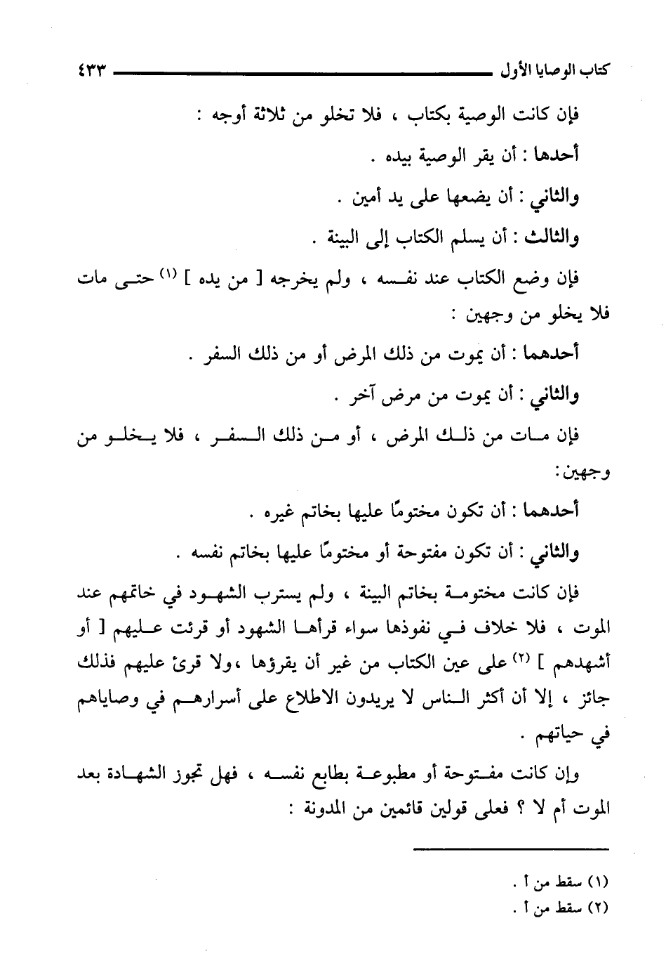 فإن كانت الوصية بكتاب، فلا تخلو من ثلاثة أوجه: