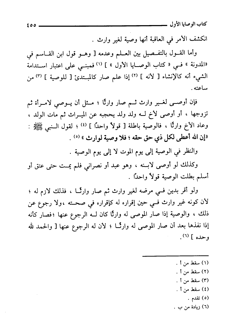 انكشف الأمر في العاقبة أنها وصية لغير وارث.