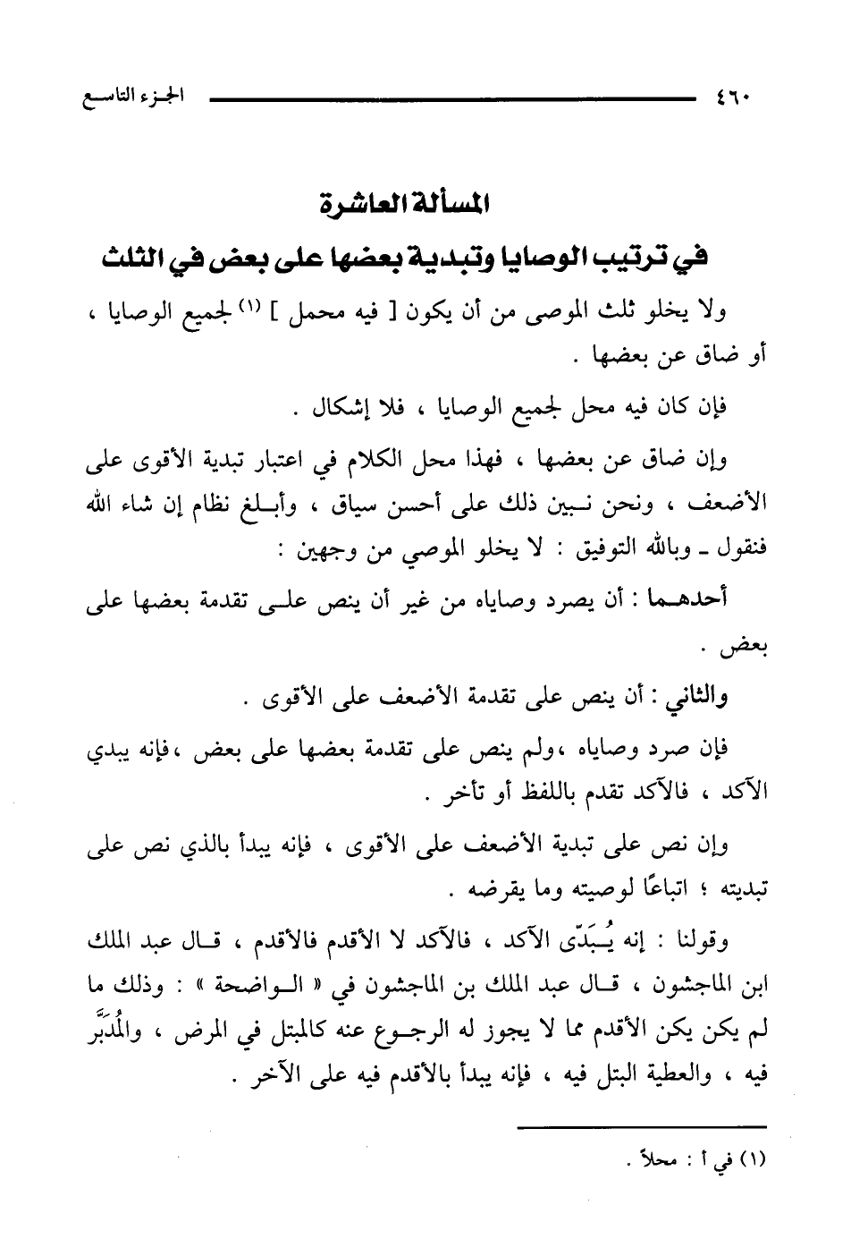 المسألة العاشرة في ترتيب الوصايا وتبدية بعضها على بعض في الثلث