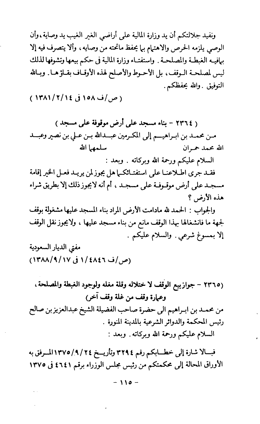 (2364 ـ بناء مسجد على أرض موقوفة على مسجد)