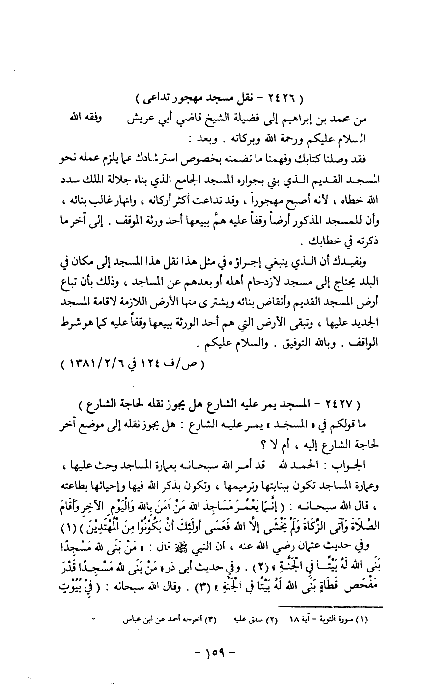 (2427 ـ المسجد يمر عليه الشارع هل يجوز نقله لحاجة الشارع)