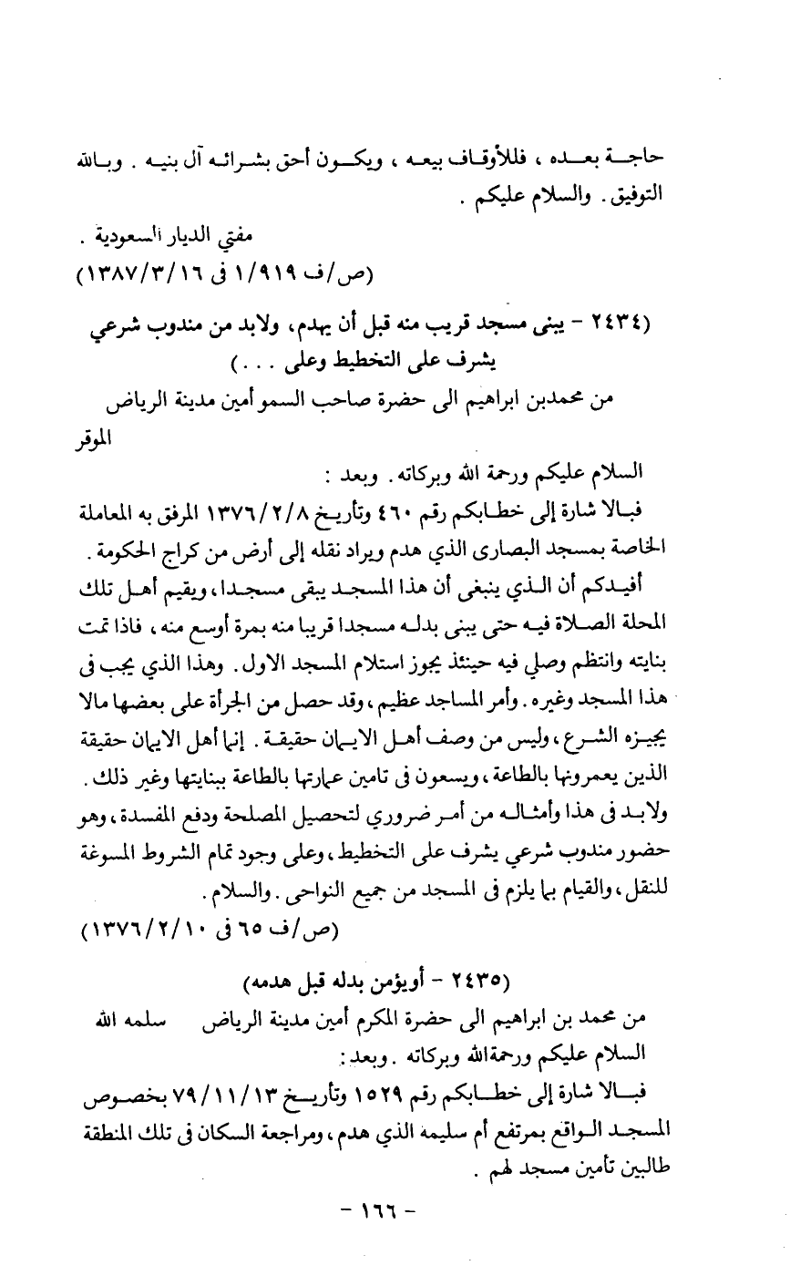 (2434 _ يبنى مسجد قريب منه قبل أن يهدم، ولابد من مندوب شرعي يشرف على التخطيط وعلى..)