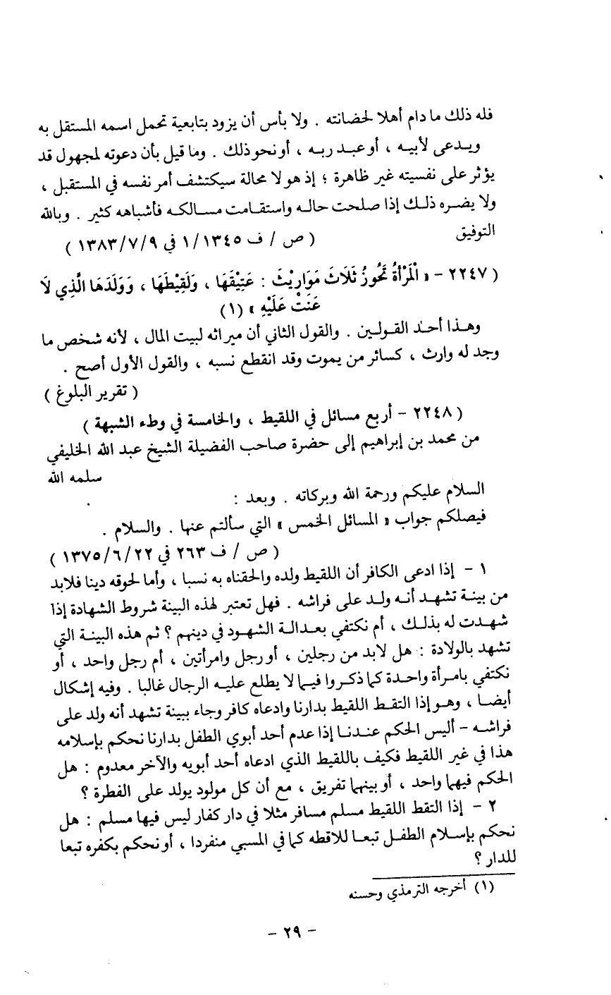 (2248 ـ أربع مسائل في اللقيط، والخامسة في وطء الشبهة)