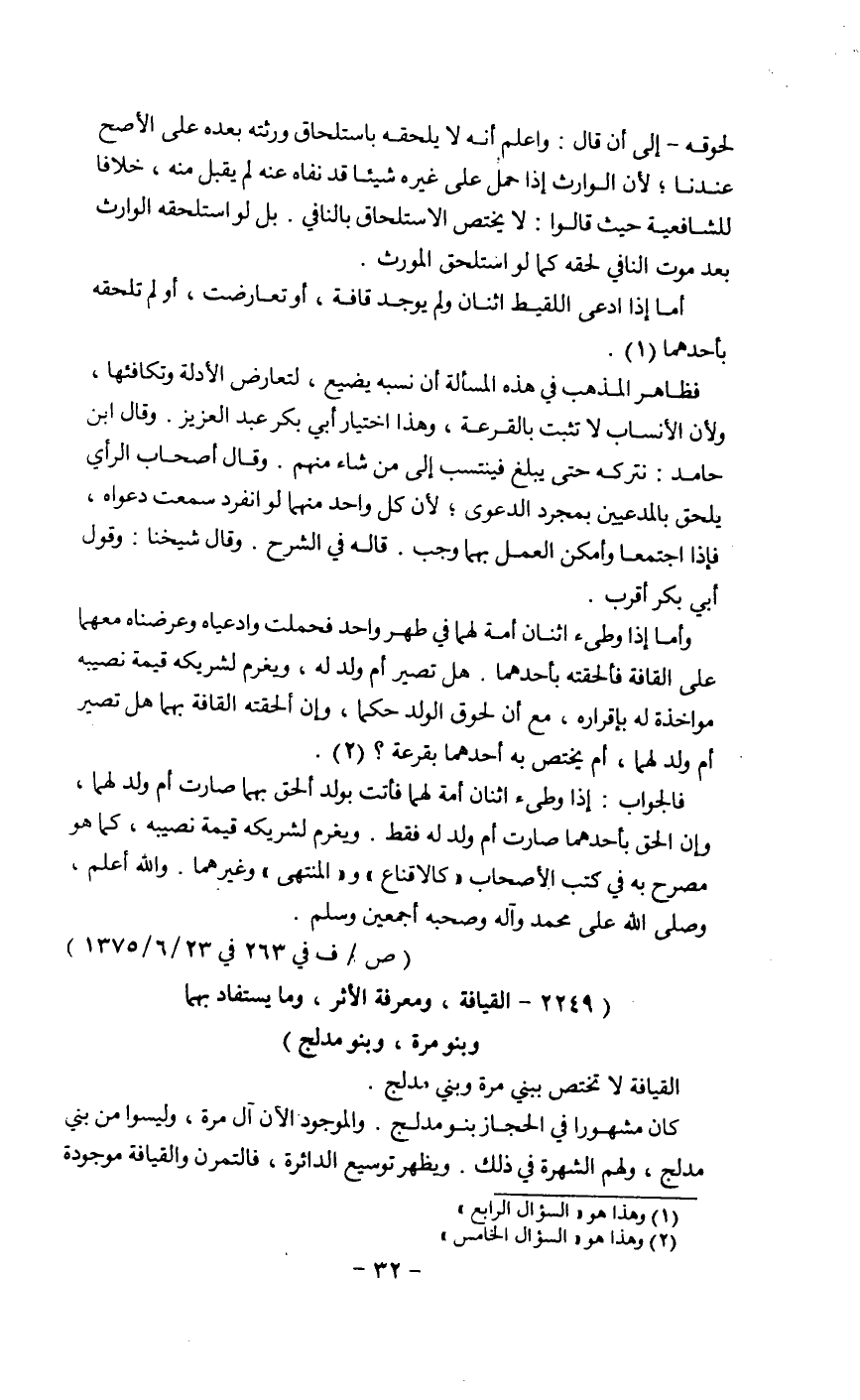 (2249 - القيافة، ومعرفة الأثر، ومأيستفاد بهما وبنو مرة، وبنو مدلج)