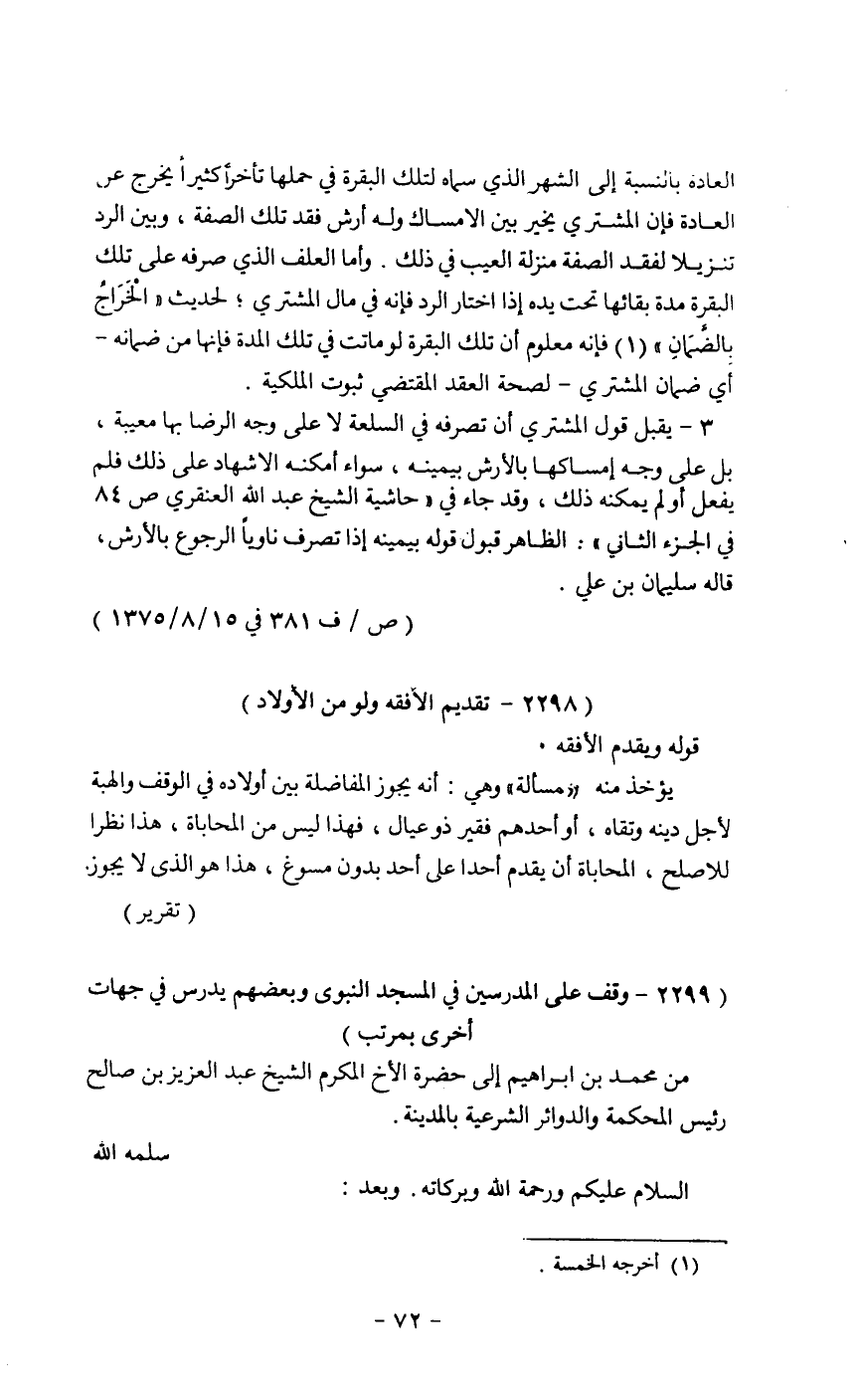 (2299 ـ وقف على المدرسين في المسجد النبوي وبعضهم يدرس في جهات أخرى بمرتب)