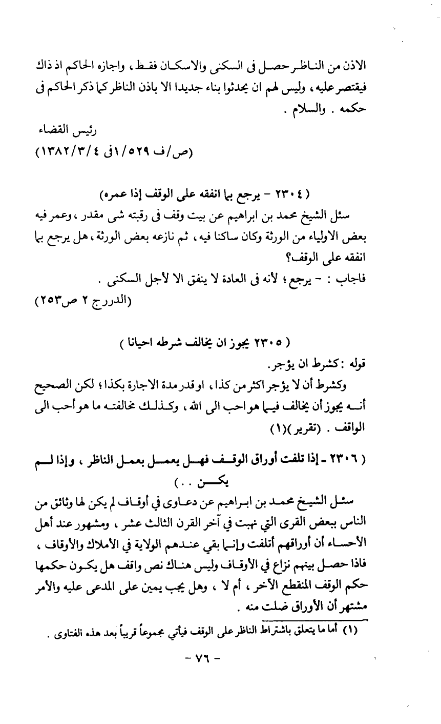 (¬1) أما مايتعلق باشتراط الناظر على الوقف فيأتي مجموعا قريباً بعد هذه الفتاوي.