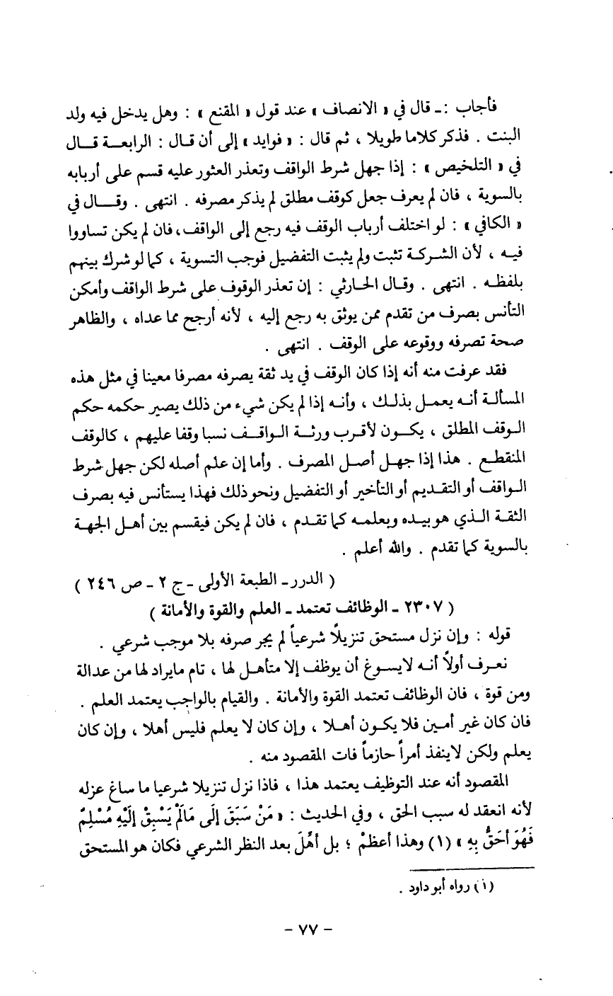 نعرف أولاً أنه لايسوغ أن يوظف إلا متأهل لها، تام مايراد لها من عدالة ومن قوة، فإن الوظائف تعتمد القوة والأمانة. والقيام بالواجب يعتمد العلم.