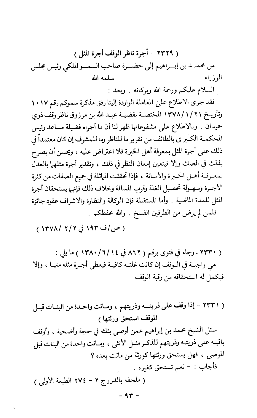 (2329 ـ أجرة ناظر الوقف أجرة المثل)