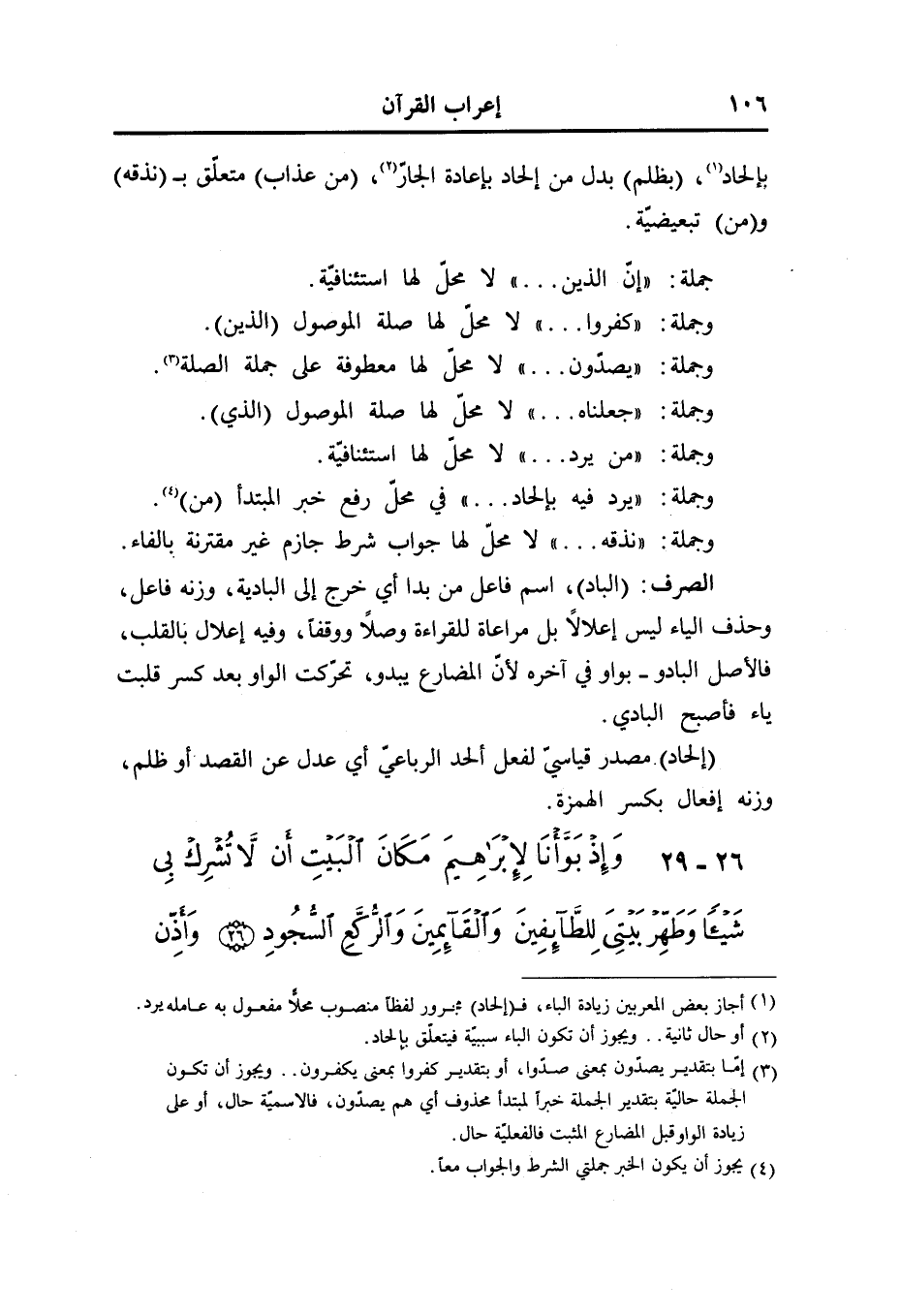(الواو) عاطفة (اسأل) فعل أمر، والفاعل أنت و (هم) ضمير مفعول به (عن القرية) جارّ ومجرور متعلّق ب (اسأل) (التي) اسم موصول مبنيّ في محلّ جرّ نعت للقرية (كانت) فعل ماض ناقص ناسخ.. و (التاء) للتأنيث، واسمه ضمير مستتر تقديره هي وهو العائد (حاضرة) خبر كانت منصوب (البحر) مضاف إليه مجرور (إذ) ظرف للزمن الماضي في محلّ نصب متعلّق بحاضرة المشتق (يعدون) مثل يظلمون (في السبت) جارّ ومجرور متعلّق ب (يعدون) ، (إذ) مثل الأول متعلّق ب (يعدون) ، (تأتي) مضارع مرفوع وعلامة الرفع الضمّة المقدّرة على الياء و (هم) ضمير مفعول به (حيتان) فاعل مرفوع، و (هم) ضمير مضاف إليه (يوم) ظرف زمان منصوب متعلّق ب (تأتيهم) ، (سبت) مضاف إليه مجرور و (هم) مثل الأخير (شرّعا) حال منصوبة من حيتان (الواو) عاطفة (يوم) مثل الأول متعلّق ب (لا تأتيهم) ، (لا) حرف نفي (يسبتون) مثل يظلمون (لا) مثل الأول (تأتيهم) مثل الأولى، والفاعل ضمير مستتر تقديره هي (الكاف)