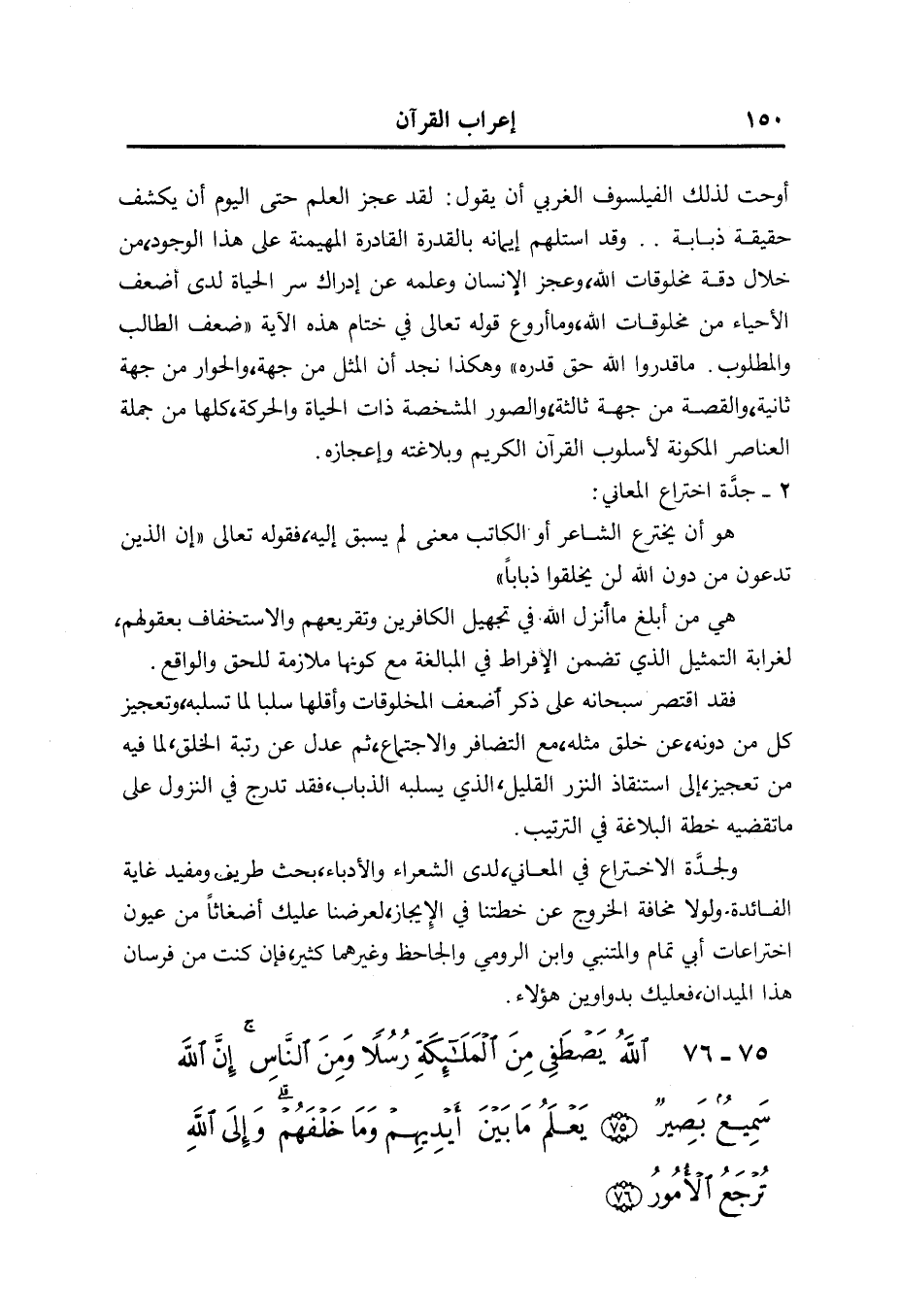 1- قوله تعالى: أَيُشْرِكُونَ ما لا يَخْلُقُ شَيْئاً وَهُمْ يُخْلَقُونَ؟ الهمزة للاستنكار، وكان هذا المعنى مسار الجدل بين الفلاسفة الملاحدة واللاهوتيين. وقد استدل الآخرون على وجوده تعالى بقولهم: لم يستطع العلم والعلماء حتى اليوم أن يعرفوا حقيقة ذبابه فضلا عن أن يخلقوها..!