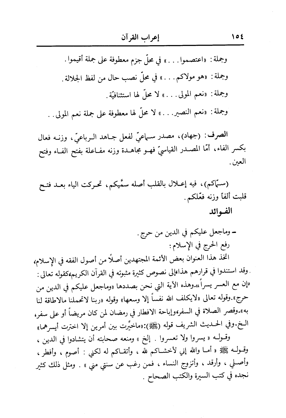 (إنّ) حرف مشبّه بالفعل (وليّي) اسم إنّ منصوب وعلامة النصب الفتحة المقدّرة على ما قبل الياء، و (الياء) ضمير مضاف إليه (الله) لفظ الجلالة خبر إنّ مرفوع (الذي) اسم موصول مبنيّ في محلّ رفع نعت للفظ الجلالة (نزّل) فعل ماض، والفاعل هو (الكتاب) مفعول به منصوب (الواو) عاطفة (هو) ضمير منفصل مبتدأ (يتولّى) مضارع مرفوع وعلامة الرفع الضمّة المقدّرة على الألف، والفاعل هو (الصالحين) مفعول به منصوب، وعلامة النصب الياء.