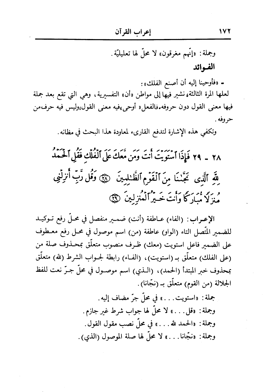(2) يجوز أن يتعلّق الجارّ بمحذوف مفعول مطلق أي ثبتت الأنفال ثبوتا كإخراجك بالحقّ.. وثمّة أوجه أخرى في تعليق الجارّ وجعلها أبو حيّان في البحر خمسة عشر وجها منقولة عن المفسّرين منها:- تعليقه بمفعول مطلق عامله أصلحوا أي أصلحوا ذات بينكم إصلاحا كإخراجك من بيتك، وفيه التفات من خطاب الجماعة إلى خطاب المفرد. ب- أو بمفعول مطلق عامله أطيعوا أي أطيعوا الله ورسوله كإخراجك من بيتك بالحقّ أي طاعة محقّقة. ج- أو بمفعول مطلق عامله يتوكّلون أي يتوكّلون توكّلا كإخراجك. د- أو هو صفة ل (حقّا) من قولهم هم المؤمنون حقا أي حقا كإخراج.. هـ- أو بمفعول مطلق عامله كارهون أي هم كارهون كراهية كإخراجك ...