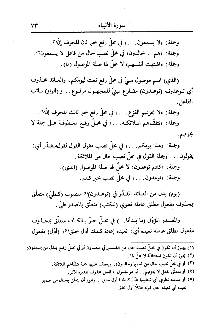 معنى يتمسّكوا، وعلامة الجرّ الكسرة و (ها) ضمير مضاف إليه (السين) حرف استقبال (أوري) مضارع مرفوع وعلامة الرفع الضمّة المقدّرة على الياء و (كم) ضمير مفعول به أوّل، والفاعل ضمير مستتر تقديره أنا (دار) مفعول به ثان منصوب (الفاسقين) مضاف إليه مجرور وعلامة الجرّ الياء.