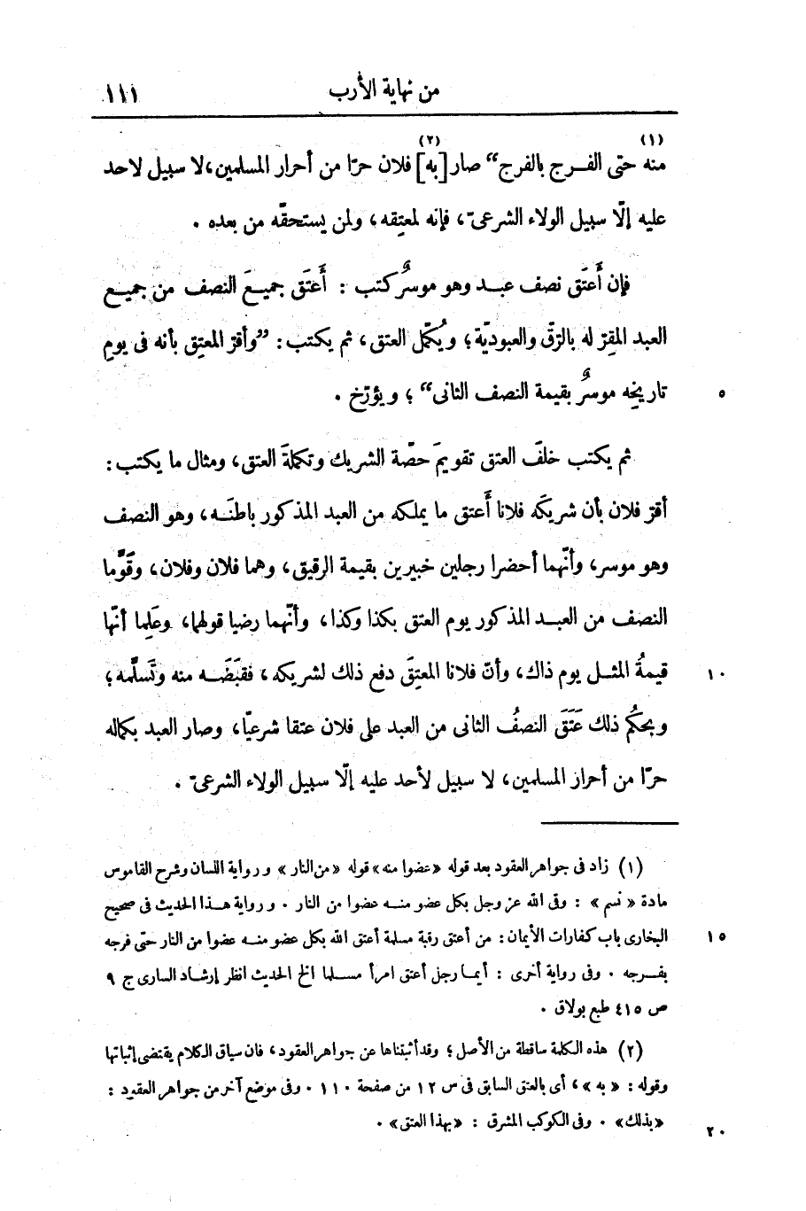 منه «1» حتى الفرج بالفرج» صار [به] «2» فلان حرّا من أحرار المسلمين، لا سبيل لاحد عليه إلّا سبيل الولاء الشرعىّ، فإنه لمعتقه، ولمن يستحقّه من بعده.