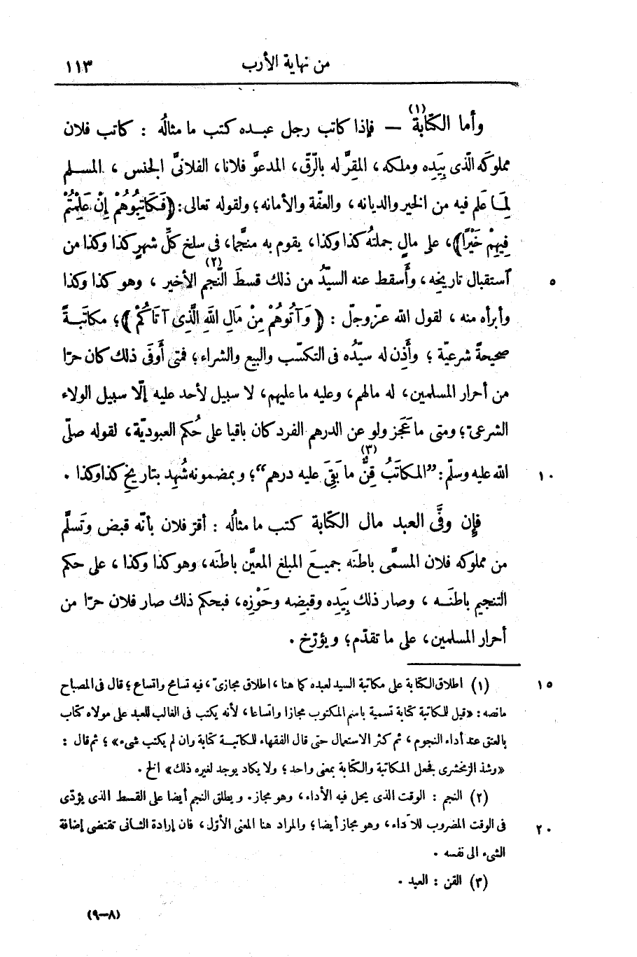 ؛ مكاتبة صحيحة شرعيّة؛ وأذن له سيّده فى التكسّب والبيع والشراء؛ فمتى أوفى ذلك كان حرّا من أحرار المسلمين، له مالهم، وعليه ما عليهم، لا سبيل لأحد عليه إلّا سبيل الولاء الشرعىّ؛ ومتى ما عجز ولو عن الدرهم الفرد كان باقيا على حكم العبوديّة، لقوله صلى الله عليه وسلم: «المكاتب قنّ «3» ما بقى عليه درهم» ؛ وبمضمونه شهد بتاريخ كذا وكذا.