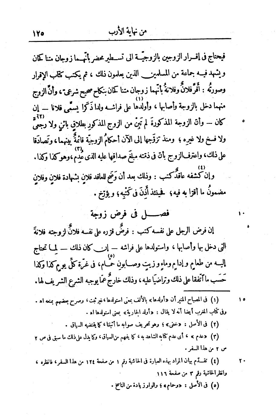 إن فرض الرجل على نفسه كتب: فرض قرّره على نفسه فلان لزوجته فلانة التى دخل بها وأصابها، واستولدها على فراشه- إن كان ذلك- لما تحتاج إليه من طعام وإدام وماء وزيت وصابون حمّام «5» ، فى غرّة كلّ يوم كذا وكذا حسب ما اتّفقا على ذلك وتراضيا عليه، وذلك خارج عمّا يوجبه الشرع الشريف لها.
