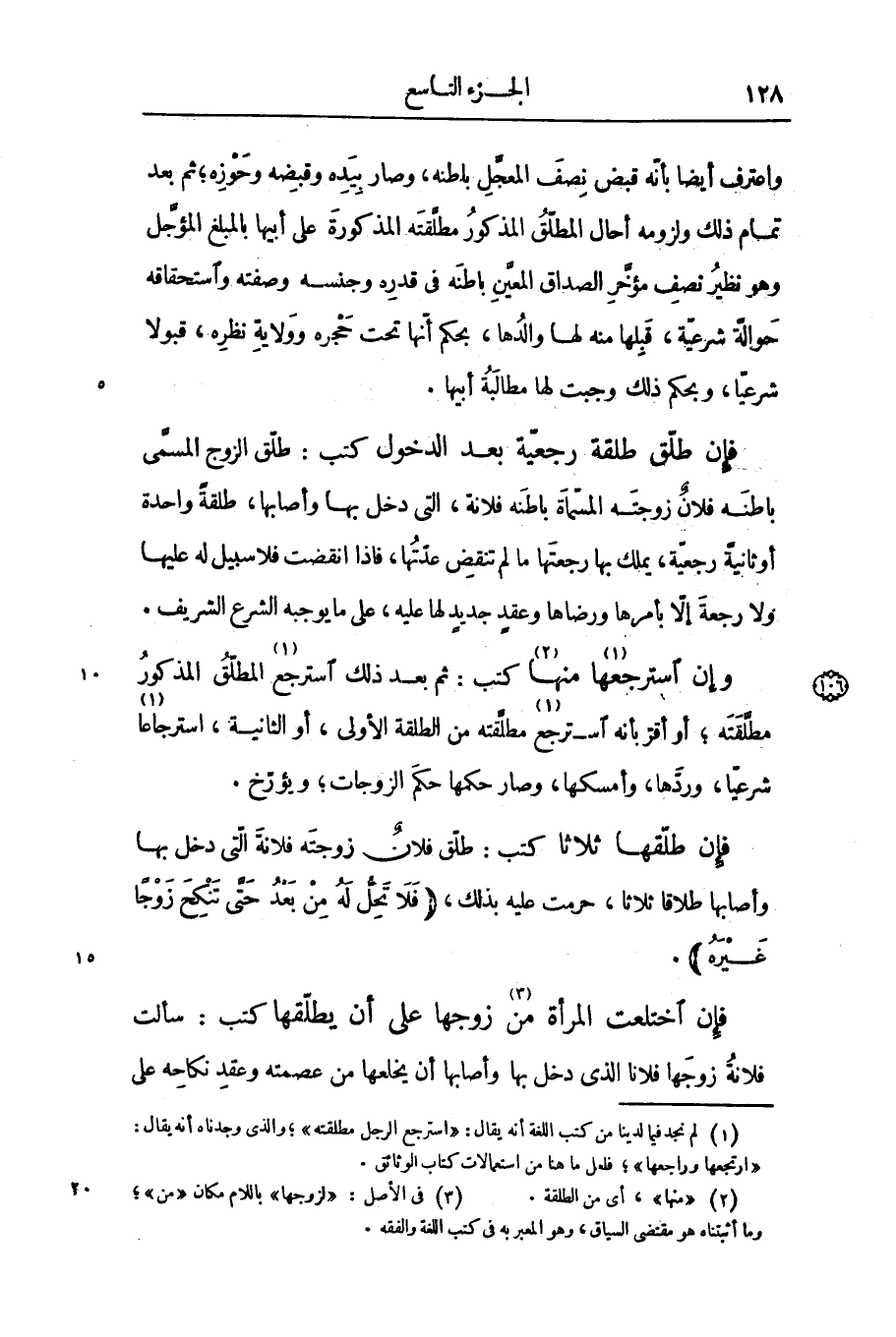 «2» كتب: ثمّ بعد ذلك استرجع «3» المطلّق المذكور مطلّقته؛ أو أقرّ بأنه استرجع «4» مطلّقته من الطلقة الأولى، أو الثانية، استرجاعا «5» شرعيّا، وردّها، وأمسكها، وصار حكمها حكم الزوجات؛ ويؤرّخ.