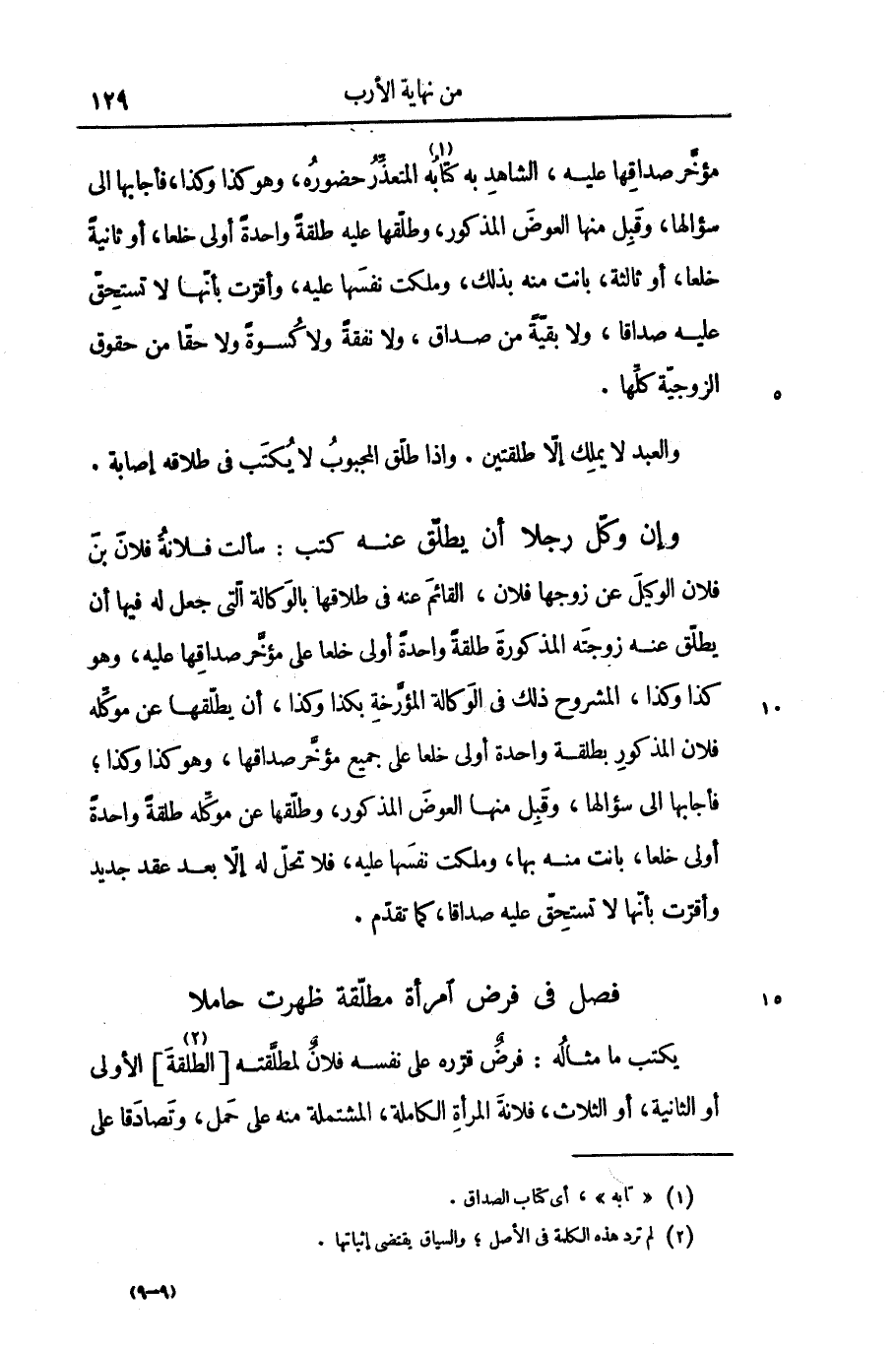 والعبد لا يملك إلّا طلقتين. وإذا طلّق المجبوب لا يكتب فى طلاقه إصابة.