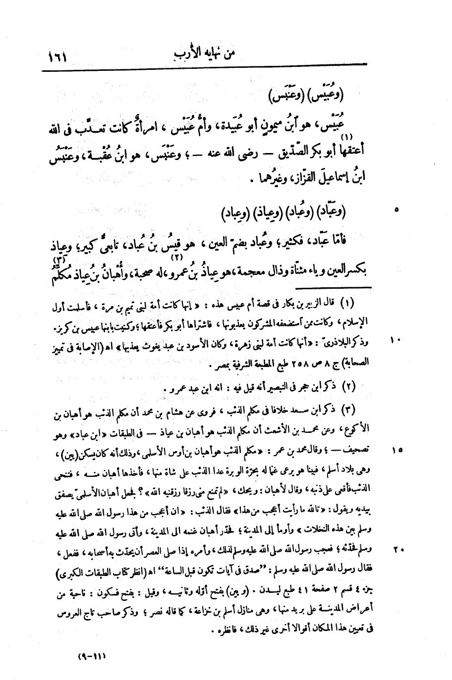 (وعبّاد) (وعباد) (وعياذ) (وعباد) فأمّا عبّاد، فكثير؛ وعباد بضمّ العين، هو قيس بن عباد، تابعىّ كبير؛ وعياذ بكسر العين وياء مثنّاة وذال معجمة، هو عياذ بن عمرو «2» ، له صحبة، وأهبان بن عياذ مكلّم «3»