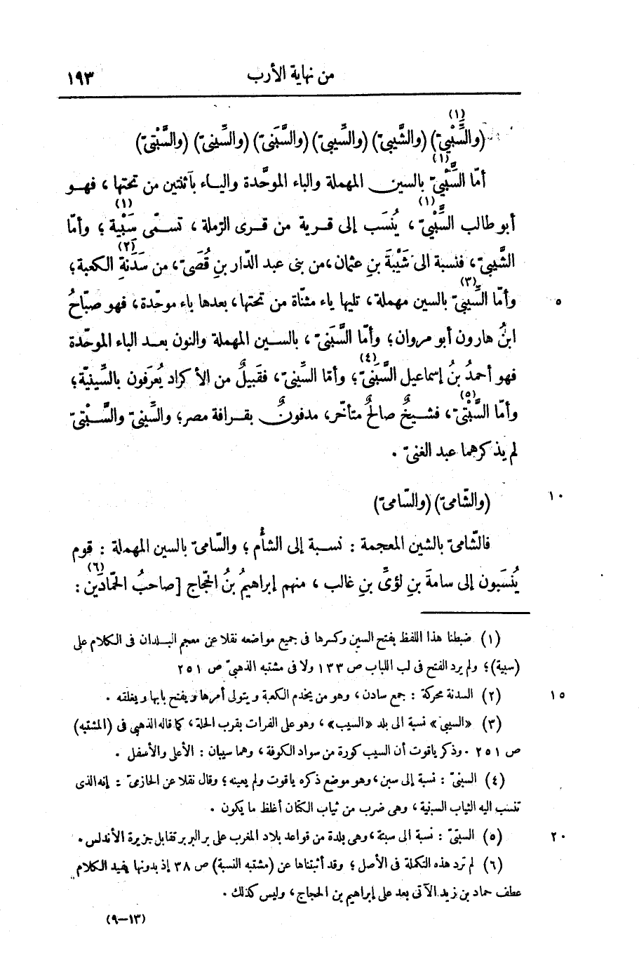 (والسّبيىّ «1» ) (والشّيبىّ) (والسّيبىّ) (والسّبنىّ) (والسّينىّ) (والسّبتىّ) أمّا السّبيىّ بالسين المهملة والباء الموحّدة والياء باثنتين من تحتها، فهو أبو طالب السّبيىّ «2» ، ينسب إلى قرية من قرى الرّملة، تسمّى سبية «3» ؛ وأمّا الشّيبىّ، فنسبة إلى شيبة بن عثمان، من بنى عبد الدّار بن قصىّ، من سدنة «4» الكعبة؛ وأمّا السّيبىّ «5» بالسين مهملة، تليها ياء مثنّاة من تحتها، بعدها باء موحّدة، فهو صبّاح ابن هارون أبو مروان؛ وأمّا السّبنىّ، بالسين المهملة والنون بعد الباء الموحّدة فهو أحمد بن إسماعيل السّبنىّ «6» ؛ وأمّا السّينىّ، فقبيل من الأكراد يعرفون بالسّينيّة؛ وأمّا السّبتىّ «7» ، فشيخ صالح متأخّر، مدفون بقرافة مصر؛ والسّينىّ، والسّبتىّ لم يذكرهما عبد الغنىّ.