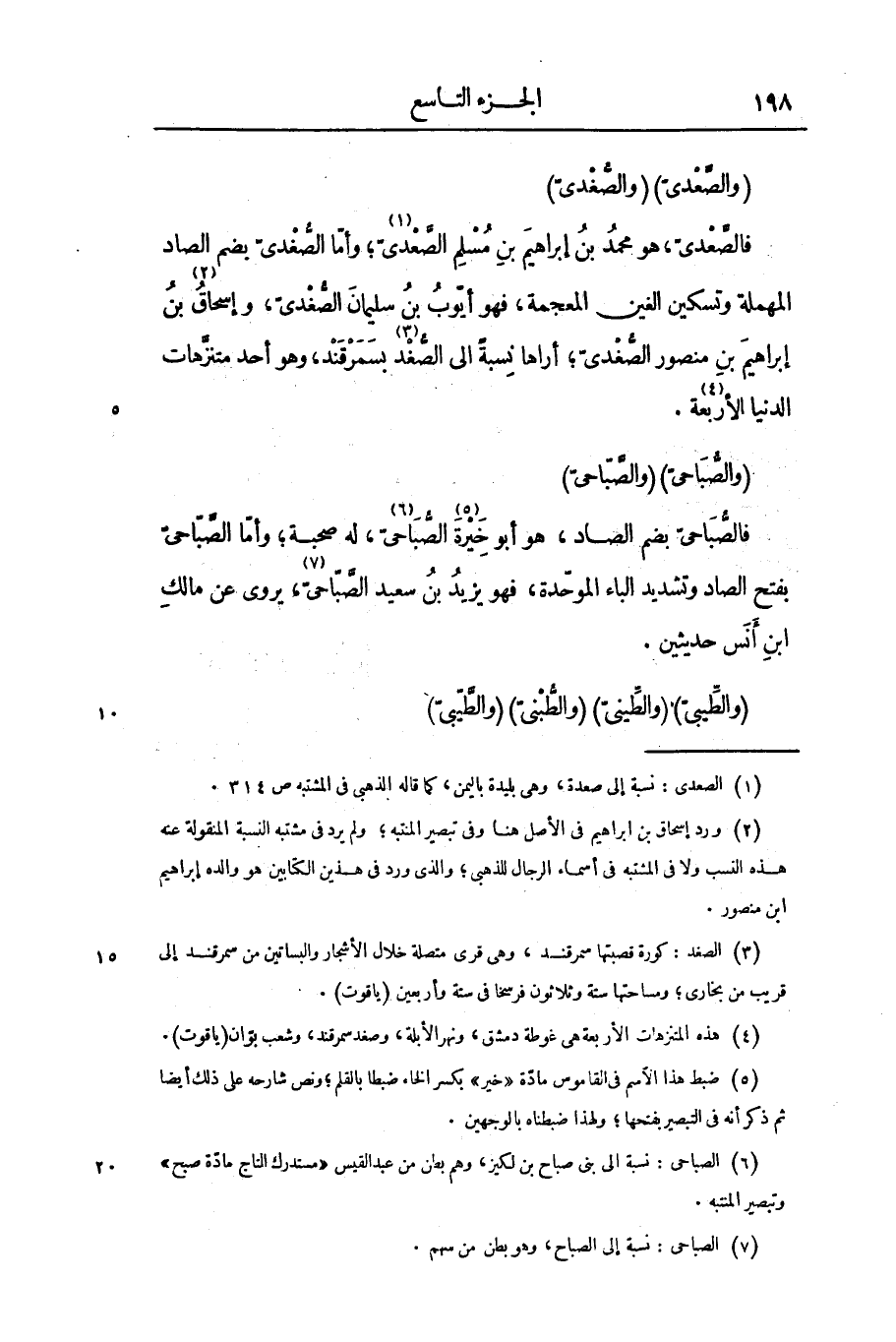 (والصّعدىّ) (والصّغدىّ) فالصّعدىّ، هو محمد بن إبراهيم بن مسلم الصّعدىّ «1» ؛ وأمّا الصّغدىّ بضم الصاد المهملة وتسكين الغين المعجمة، فهو أيّوب بن سليمان الصّغدىّ، وإسحاق «2» بن إبراهيم بن منصور الصّغدىّ؛ أراها نسبة إلى الصّغد «3» بسمرقند، وهو أحد متنزّهات الدنيا الأربعة «4» .