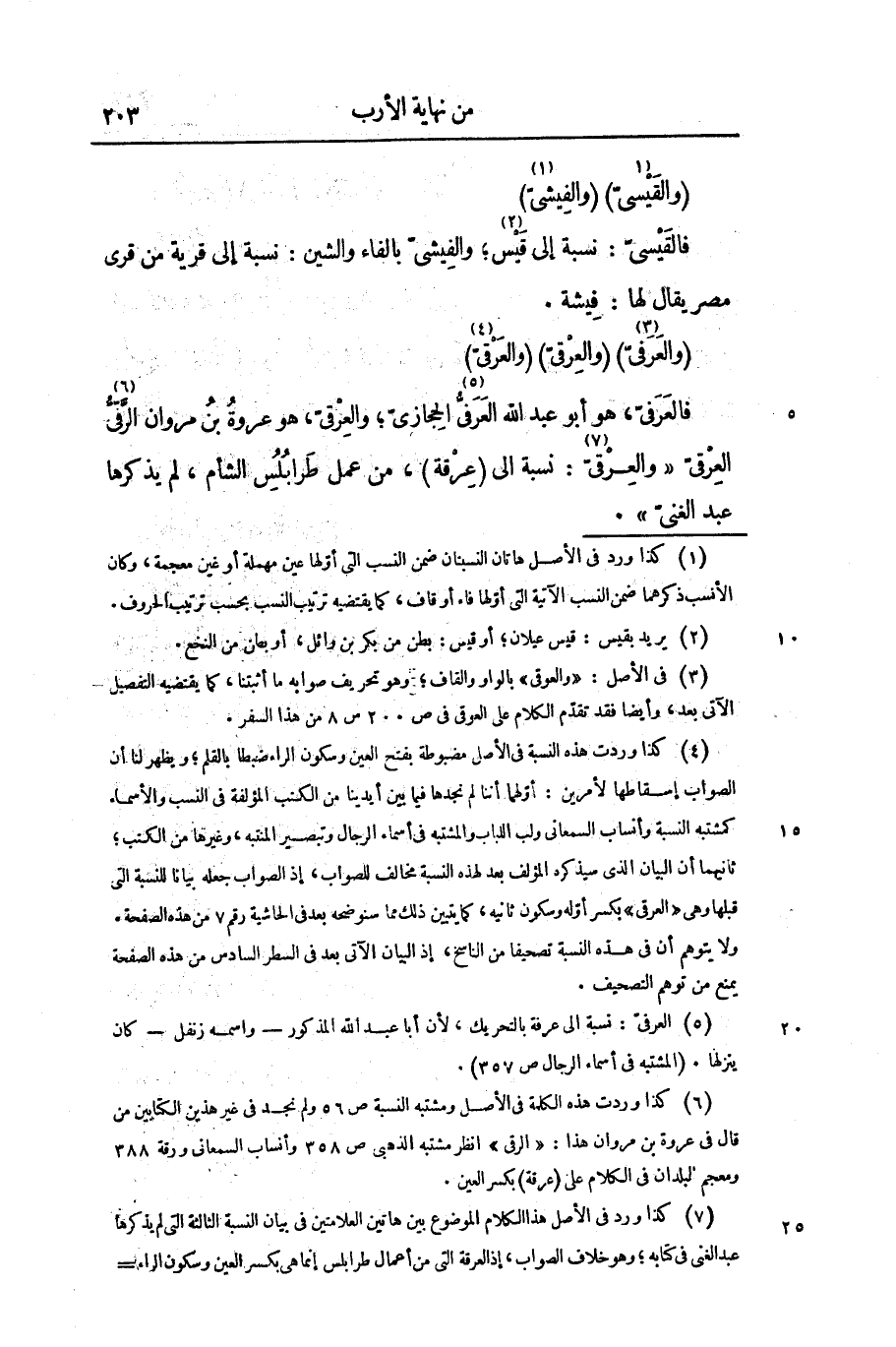 (والعرفىّ «4» ) (والعرقىّ) (والعرقىّ «5» ) فالعرفىّ، هو أبو عبد الله العرفىّ «6» الحجازىّ؛ والعرقىّ، هو عروة بن مروان الرّقّىّ «7» العرقىّ «والعرقىّ «8» : نسبة الى (عرقة) ، من عمل طرابلس الشأم، لم يذكرها عبد الغنىّ» .