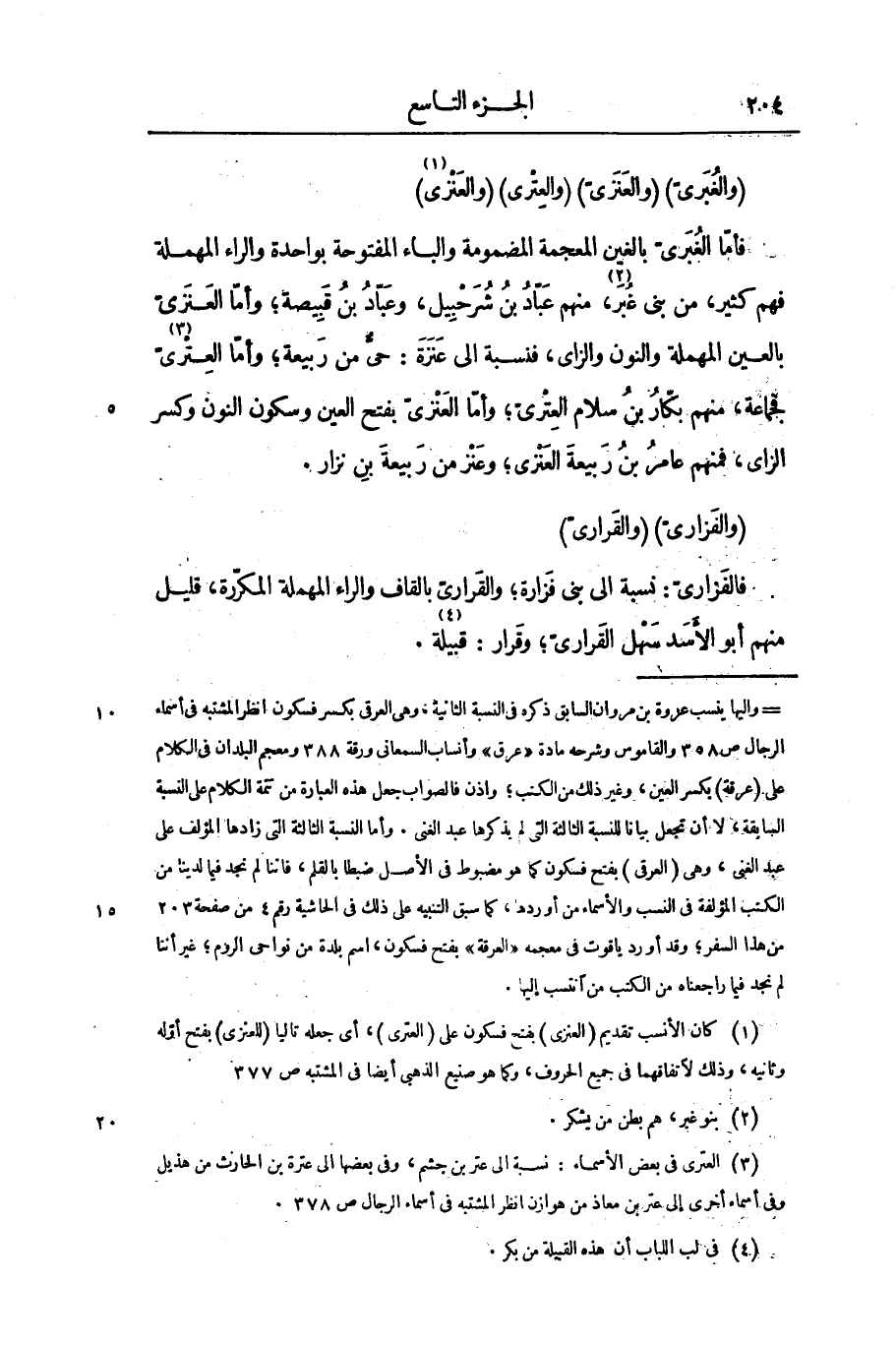 (والغبرىّ) (والعنزىّ) (والعترى) (والعنزى «1» ) فأمّا الغبرىّ بالغين المعجمة المضمومة والباء المفتوحة بواحدة والراء المهملة فهم كثير، من بنى غبر «2» ، منهم عبّاد بن شرحبيل، وعبّاد بن قبيصة؛ وأمّا العنزىّ بالعين المهملة والنون والزاى، فنسبة إلى عنزة: حىّ من ربيعة؛ وأمّا العترىّ «3» فجماعة، منهم بكّار بن سلام العترىّ؛ وأمّا العنزىّ بفتح العين وسكون النون وكسر الزاى، فمنهم عامر بن ربيعة العنزى؛ وعنز من ربيعة بن نزار.