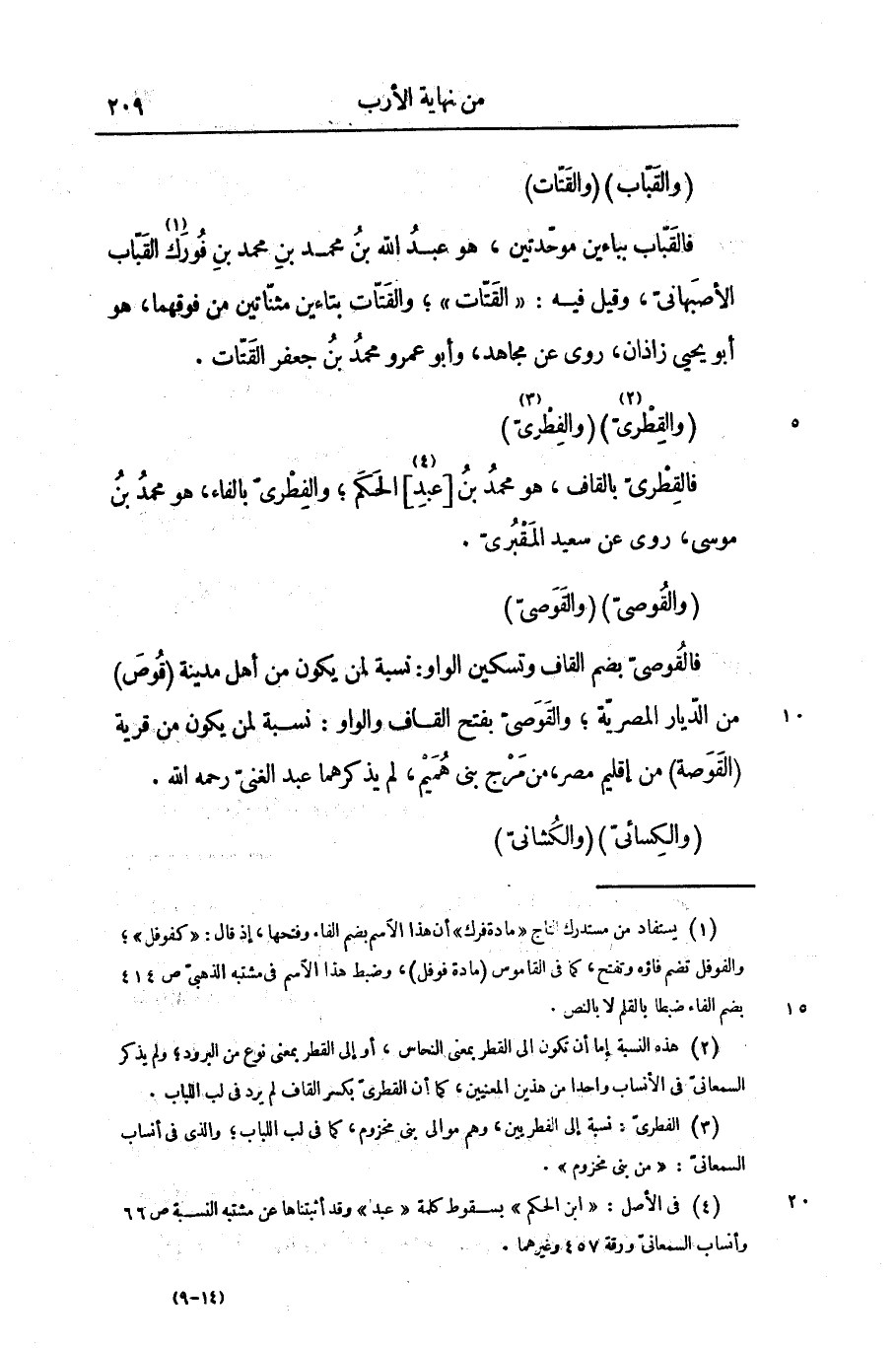 (والقوصىّ) (والقوصىّ) فالقوصىّ بضم القاف وتسكين الواو: نسبة لمن يكون من أهل مدينة (قوص) من الدّيار المصريّة؛ والقوصىّ بفتح القاف والواو: نسبة لمن يكون من قرية (القوصة) من إقليم مصر، من مرج بنى هميم، لم يذكرهما عبد الغنىّ رحمه الله.