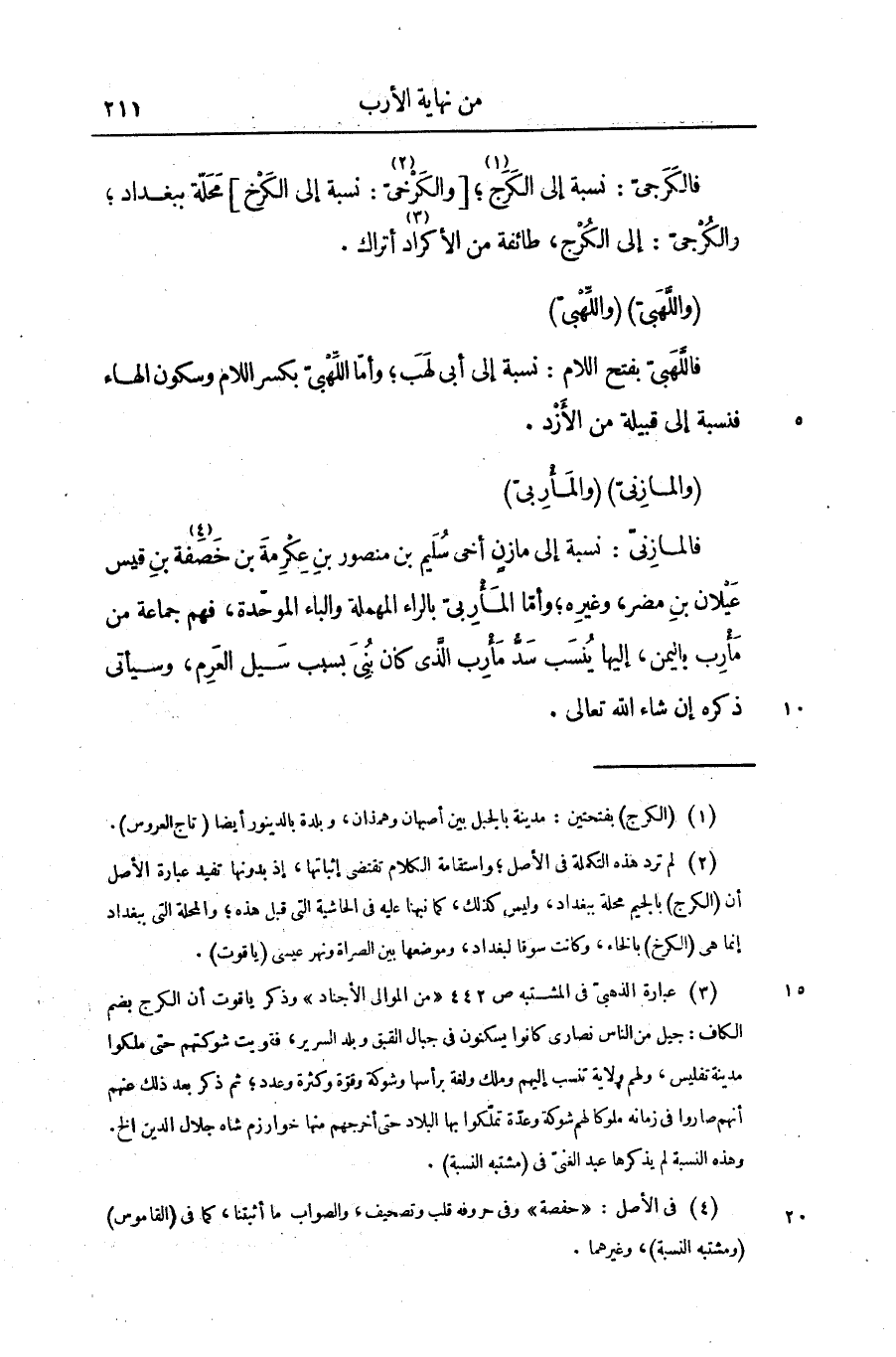 (والمازنىّ) (والمأربىّ) فالمازنىّ: نسبة إلى مازن أخى سليم بن منصور بن عكرمة بن خصفة «4» بن قيس عيلان بن مضر، وغيره؛ وأمّا المأربىّ بالراء المهملة والباء الموحّدة، فهم جماعة من مأرب باليمن، إليها ينسب سدّ مأرب الذى كان بنى بسبب سيل العرم، وسيأتى ذكره إن شاء الله تعالى.