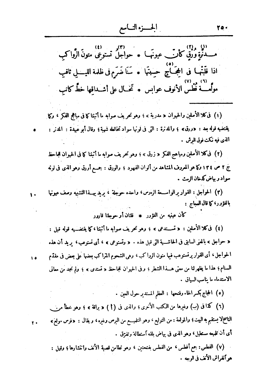 مولّعة «6» فطس «7» الأنوف عوابس ... تخال على أشداقها خطّ كاتب