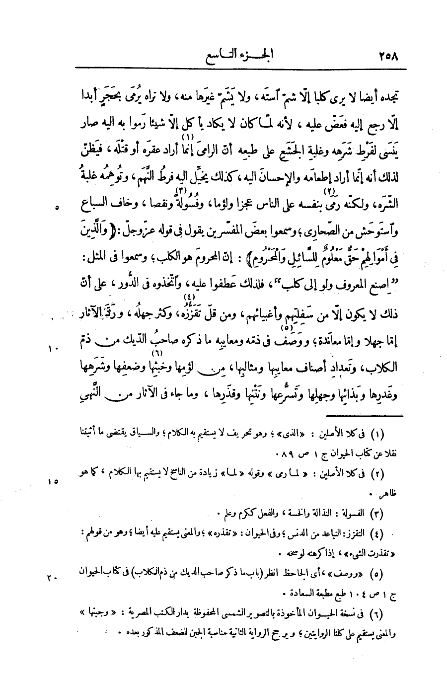 تجده أيضا لا يرى كلبا إلّا شمّ استه، ولا يشمّ غيرها منه، ولا تراه يرمى بحجر أبدا إلّا رجع إليه فعضّ عليه، لأنه لمّا كان لا يكاد يأكل إلّا شيئا رموا به اليه صار ينسى لفرط شرهه وغلبة الجشع على طبعه أنّ الرامى إنما «1» أراد عقره أو قتله، فيظنّ لذلك أنه إنّما أراد إطعامه والإحسان اليه، كذلك يخيّل اليه فرط النّهم، وتوهمه غلبة الشّره، ولكنّه رمى «2» بنفسه على الناس عجزا ولؤما، وفسولة «3» ونقصا، وخاف السباع واستوحش من الصّحارى؛ وسمعوا بعض المفسّرين يقول فى قوله عزّ وجلّ: (وَالَّذِينَ فِي أَمْوالِهِمْ حَقٌّ مَعْلُومٌ لِلسَّائِلِ وَالْمَحْرُومِ)