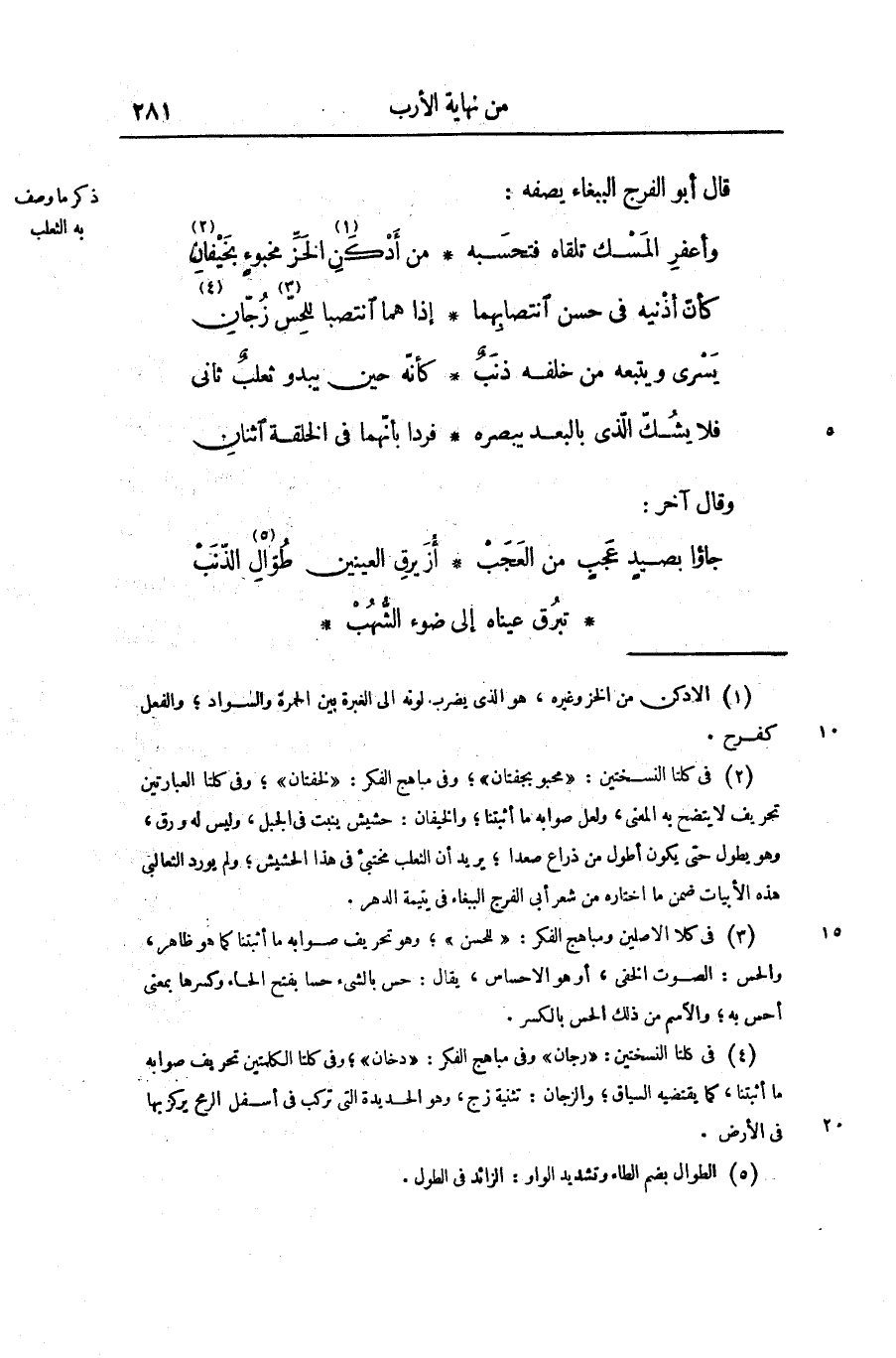 جاؤا بصيد عجب من العجب ... أزيرق العينين طوّال «5» الذنب
