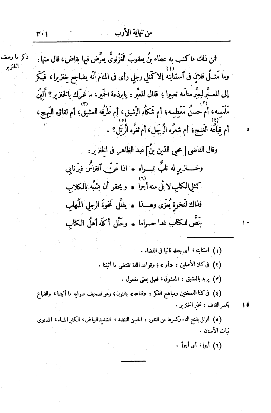 وما مثل فلان فى استنابته «1» إلا كمثل رجل رأى فى المنام أنّه يضاجع خنزيرا، فبكر إلى المعبّر ليعبّر منامه تعبيرا؛ فقال المعبّر: يا برذعة الحمير، ما غرّك بالخنزير؟ ألين ملمسه، أم «2» حسن معطسه؛ أم شكاه الرّشيق، أم طرفه العشيق «3» ؛ أم لقاؤه البهج، أم قباعه «4» الغنج؛ أم شعره الرّجل، أم ثغره الرّتل «5» ؟.