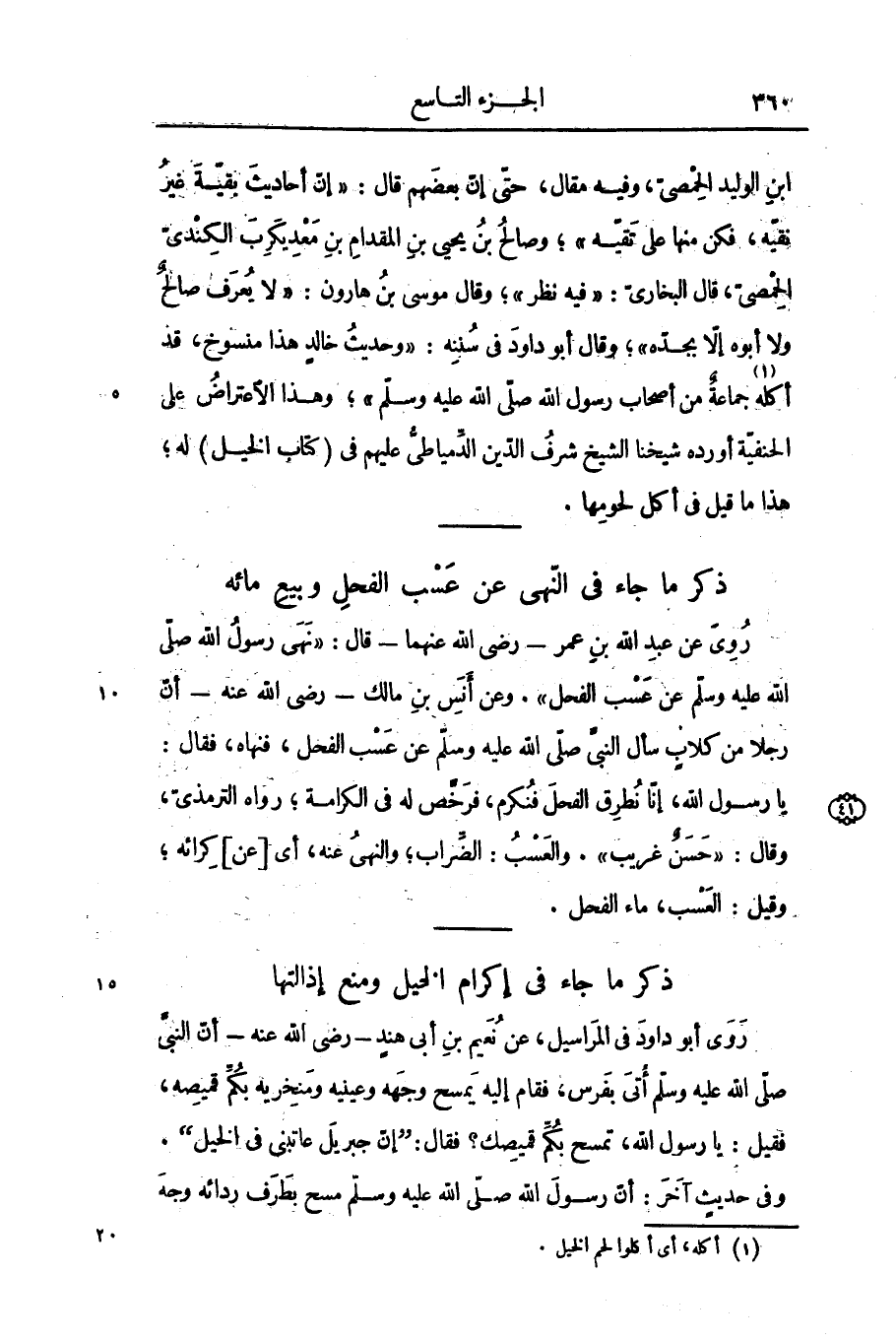 ابن الوليد الحمصىّ، وفيه مقال، حتّى إنّ بعضهم قال: «إنّ أحاديث بقيّة غير نقيّه، فكن منها على تقيّه» ؛ وصالح بن يحيى بن المقدام بن معديكرب الكندىّ الحمصىّ، قال البخارىّ: «فيه نظر» ؛ وقال موسى بن هارون: «لا يعرف صالح ولا أبوه إلّا بجدّه» ؛ وقال أبو داود فى سننه: «وحديث خالد هذا منسوخ، قد أكله «1» جماعة من أصحاب رسول الله صلى الله عليه وسلم» ؛ وهذا الاعتراض على الحنفيّة أورده شيخنا الشيخ شرف الدّين الدّمياطىّ عليهم فى (كتاب الخيل) له؛ هذا ما قيل فى أكل لحومها.