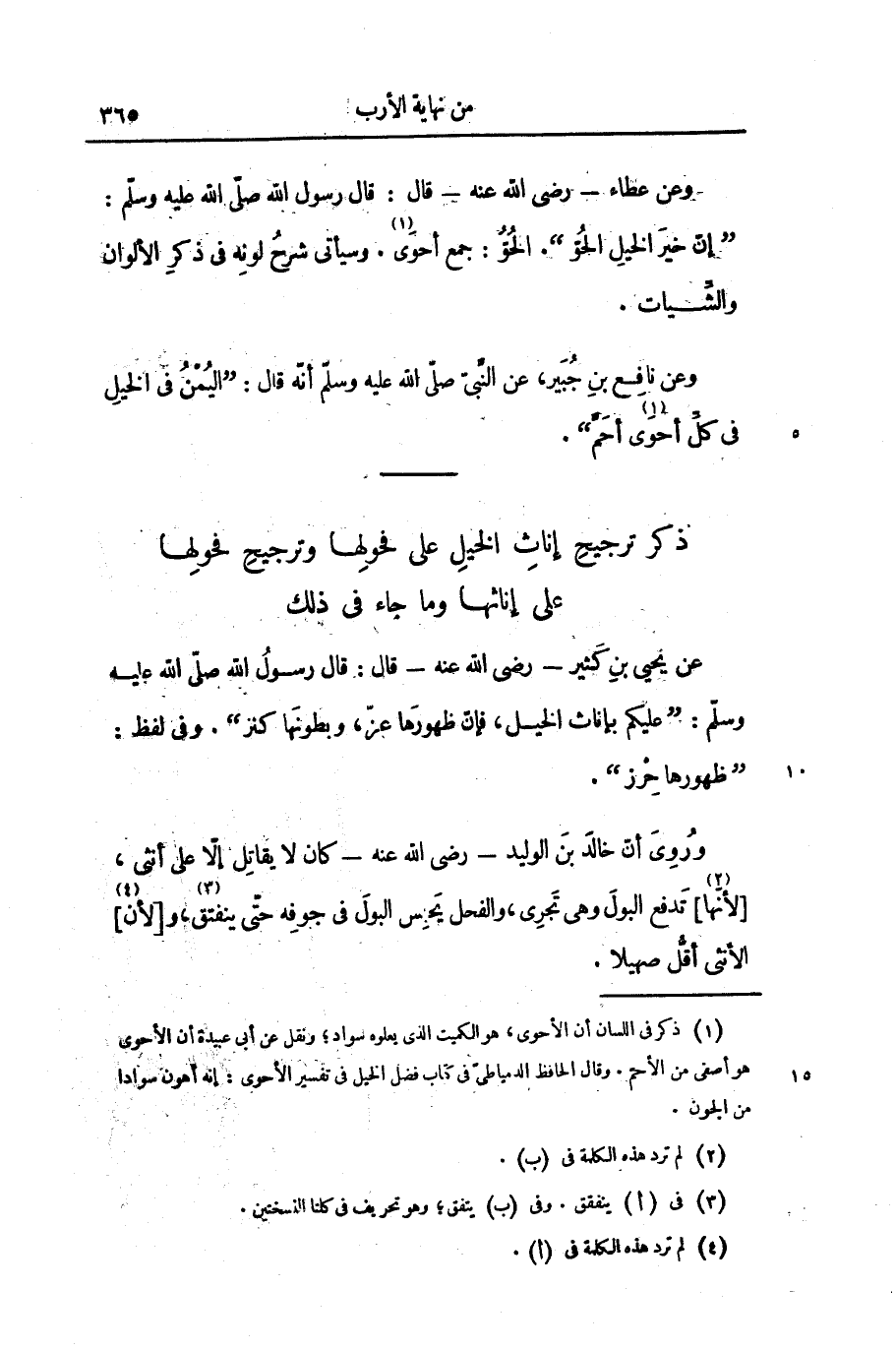 ذكر ترجيح إناث الخيل على فحولها وترجيح فحولها على إناثها وما جاء فى ذلك