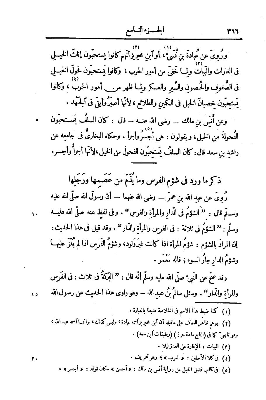 ذكر ما ورد فى شؤم الفرس وما يذمّ من عصمها ورجلها