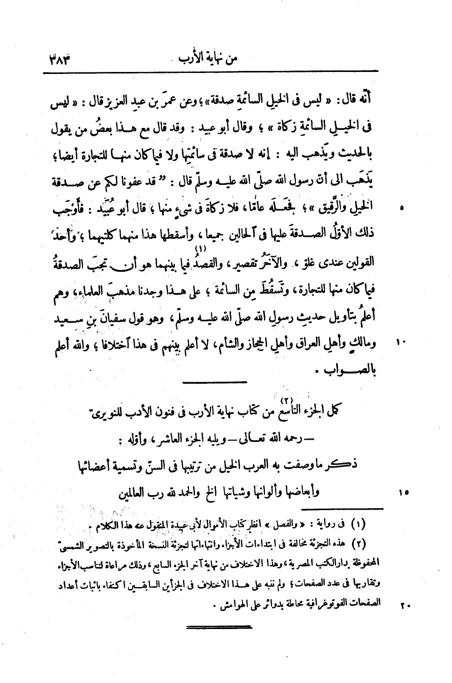 كمل الجزء التاسع «2» من كتاب نهاية الأرب فى فنون الأدب للنويرىّ- رحمه الله تعالى- ويليه الجزء العاشر، وأوّله: