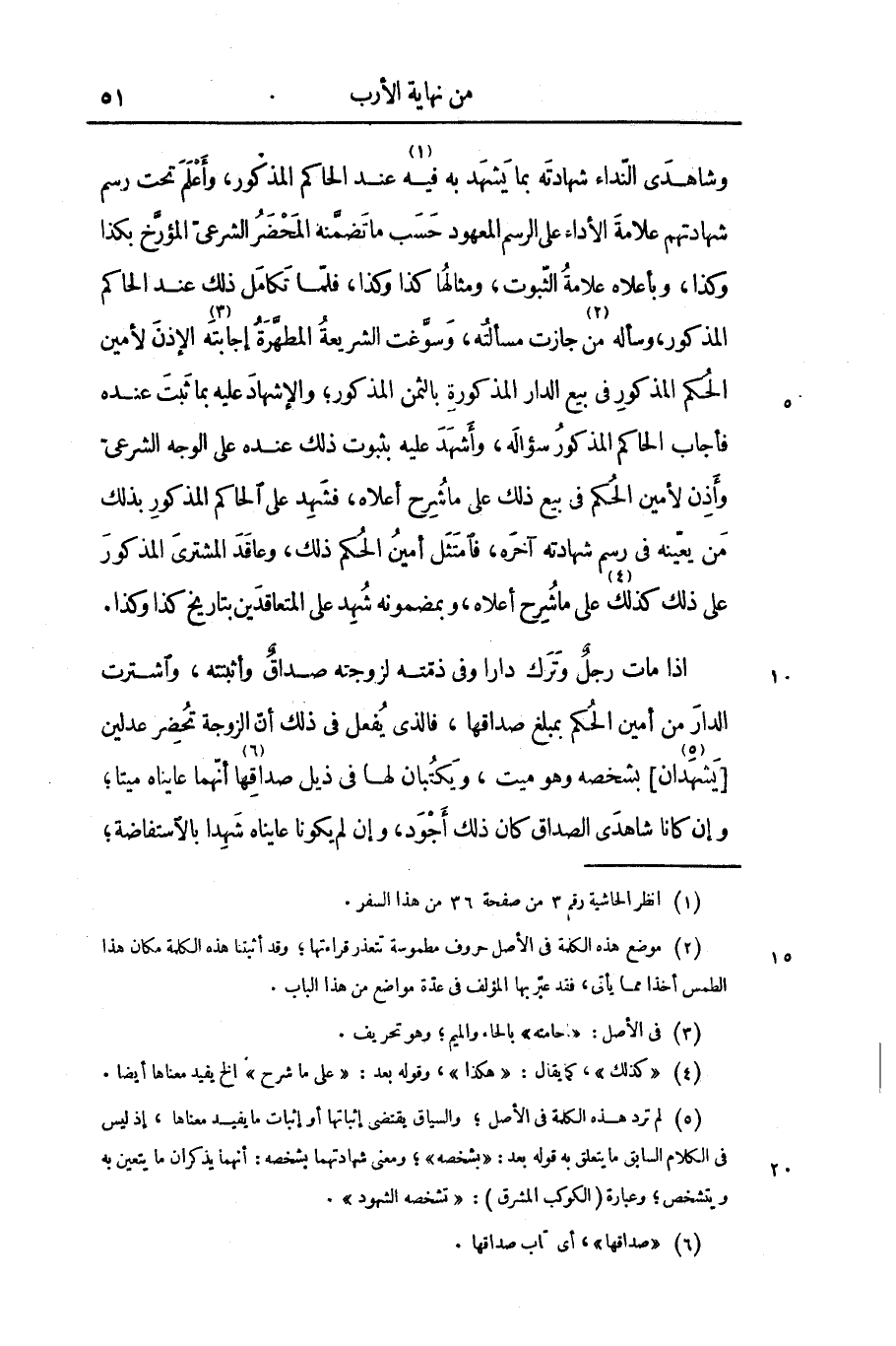 وشاهدى النّداء شهادته بما يشهد به فيه «1» عند الحاكم المذكور، وأعلم تحت رسم شهادتهم علامة الأداء على الرسم المعهود حسب ما تضمّنه المحضر الشرعىّ المؤرّخ بكذا وكذا، وبأعلاه علامة الثّبوت، ومثالها كذا وكذا، فلمّا تكامل ذلك عند الحاكم المذكور، وسأله «2» من جازت مسألته، وسوّغت الشريعة المطهّرة إجابته «3» الإذن لأمين الحكم المذكور فى بيع الدار المذكورة بالثمن المذكور؛ والإشهاد عليه بما ثبت عنده فأجاب الحاكم المذكور سؤاله، وأشهد عليه بثبوت ذلك عنده على الوجه الشرعىّ وأذن لأمين الحكم فى بيع ذلك على ما شرح أعلاه، فشهد على الحاكم المذكور بذلك من يعيّنه فى رسم شهادته آخره، فامتثل أمين الحكم ذلك، وعاقد المشترى المذكور على ذلك كذلك «4» على ما شرح أعلاه، وبمضمونه شهد على المتعاقدين بتاريخ كذا وكذا.
