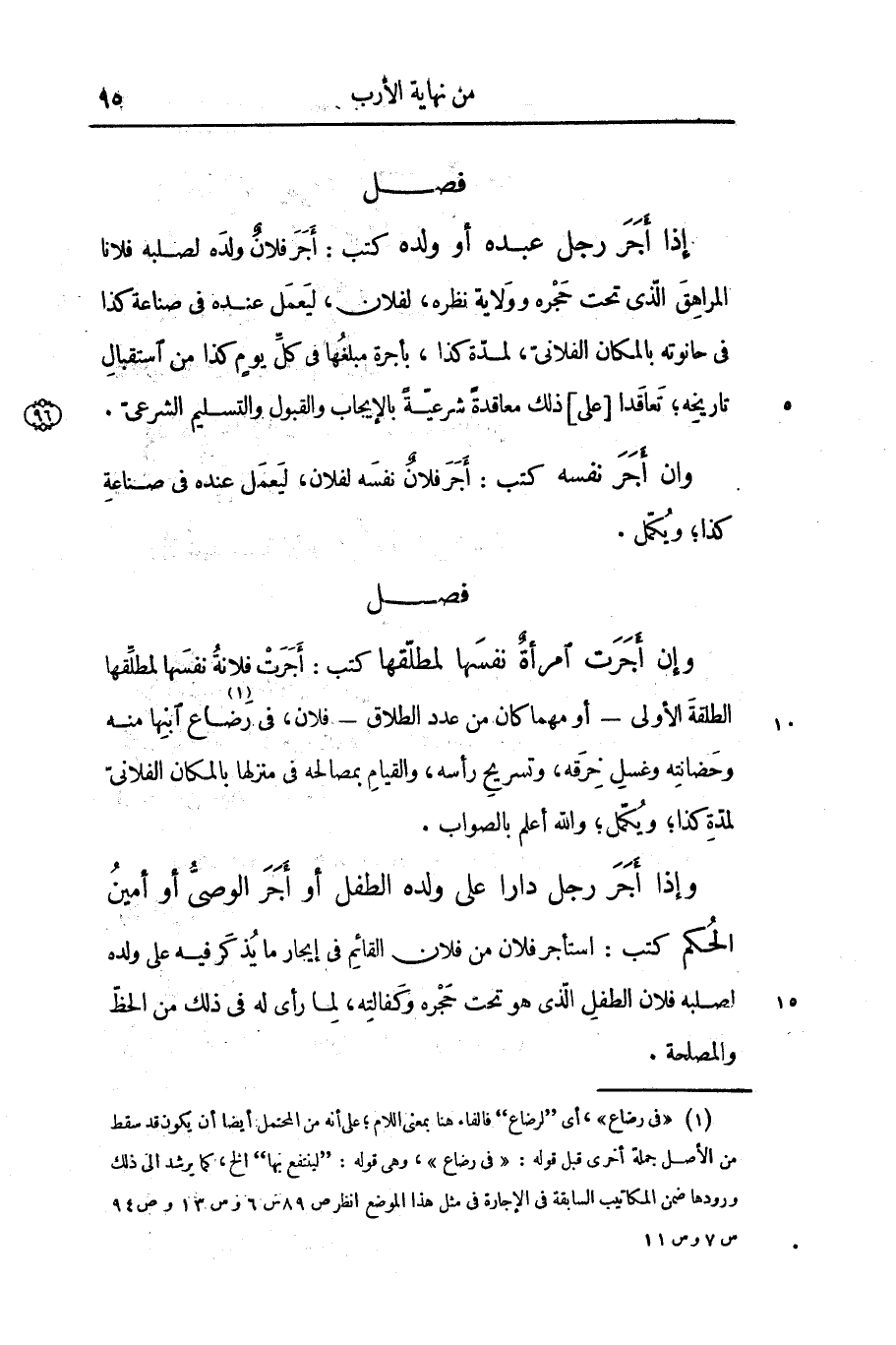 كتب: استأجر فلان من فلان القائم فى إيجار ما يذكر فيه على ولده لصلبه فلان الطفل الذى هو تحت حجره وكفالته، لما رأى له فى ذلك من الحظّ والمصلحة.
