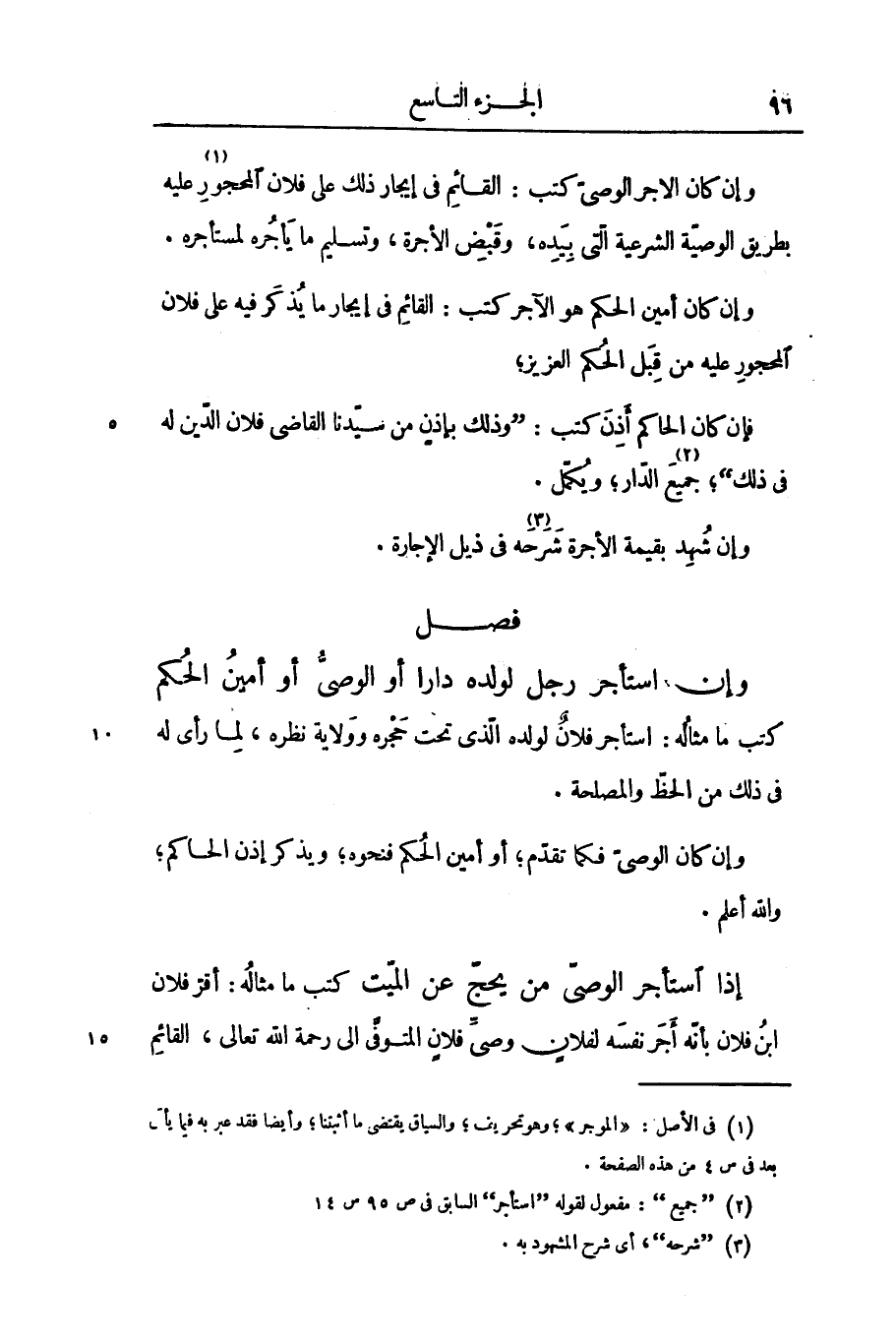 وإن كان الاجر الوصىّ كتب: القائم فى إيجار ذلك على فلان المحجور «1» عليه بطريق الوصيّة الشرعية التى بيده، وقبض الأجرة، وتسليم ما يأجره لمستأجره.