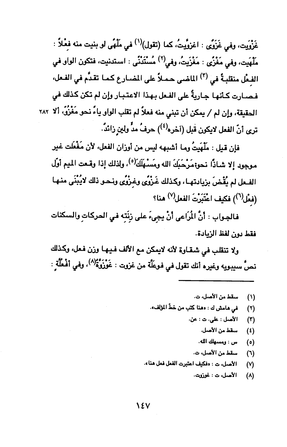 ولا تنقلب في شقاوة لأنه لا يمكن مع الألف فيها وزن فعل، وكذلك نص سيبويه وغيره أنك تقول في فوعلة ممن غزوت: غوزوة، وفي أفعلة: