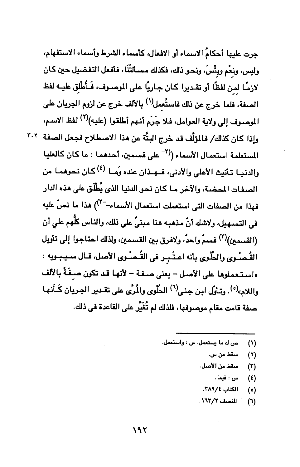 جرت عليها أحكام الأسماء أو الأفعال، كأسماء الشرط وأسماء الاستفهام، وليس، ونعم وبئس، ونحو ذلك، فكذلك مسألتنا، فأفعل التفضيل حين كان لازما لمن لفظا أو تقديرا كان جاريا على الموصوف، فأطلق عليه لفظ الصفة، فلما خرج عن ذلك فاستعمل بالألف خرج عن لزوم الجريان على الموصوف إلى ولاية العوامل، فلا جرم أنهم أطلقوا (عليه) لفظ الاسم، وإذا كان كذلك/ فالمؤلف قد خرج البتة عن هذا الاصطلاح فجعل الصفة المستعلمة استعمال الأسماء (على قسمين، أحدهما: ما كان كالعليا والدنيا تأنيث الأعلى والأدنى، فهذان عنده وما كان نحوهما من الصفات المحضة، والآخر ما كان نحو الدنيا الذي يطلق على هذه الدار فهذا من الصفات التي استعملت استعمال الأسماء) فهذا ما نص عليه في التسهيل، ولا شك أن مذهبه هنا مبني على ذلك، والناس كلهم على أن (القسمين) قسم واحد، ولا فرق بين القسمين، ولذلك احتاجوا إلى تأويل القصوى والحلوى بأنه اعتبر في القصوى الأصل، قال سيبويه: "استعملوا على الأصل- يعنى صفة- لأنها قد تكون صفة بالألف واللام". وتأول ابن جني الحلوى والمرى على تقدير الجريان كأنها صفة قامت مقام موصوفها، فلذلك لم تغير على القاعدة في ذلك.
