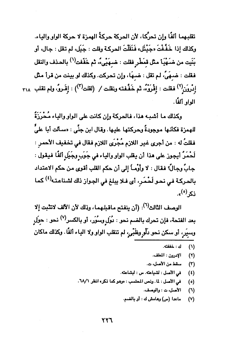وكذلك ما أشبه هذا، فالحركة وإن كانت على الواو والياء محرزة للهمزة فكأنها موجودة وحركتها عليها، وقال ابن جني: "سألت أبا علي فقلت له: من أجرى غير اللازم مجرى اللازم فقال في تخفيف الأحمر: لحمر أيجوز على هذا أن يقلب الواو والياء في جوب وجيل ألفا فيقول: جاب وجال؟ فقال: لا وأومأ إلى أن حكم القلب أقوى من حكم الاعتداء بالحركة في نحو لحمر، أي فلا يبلغ في الجواز ذلك لشناعته كما ذكر".